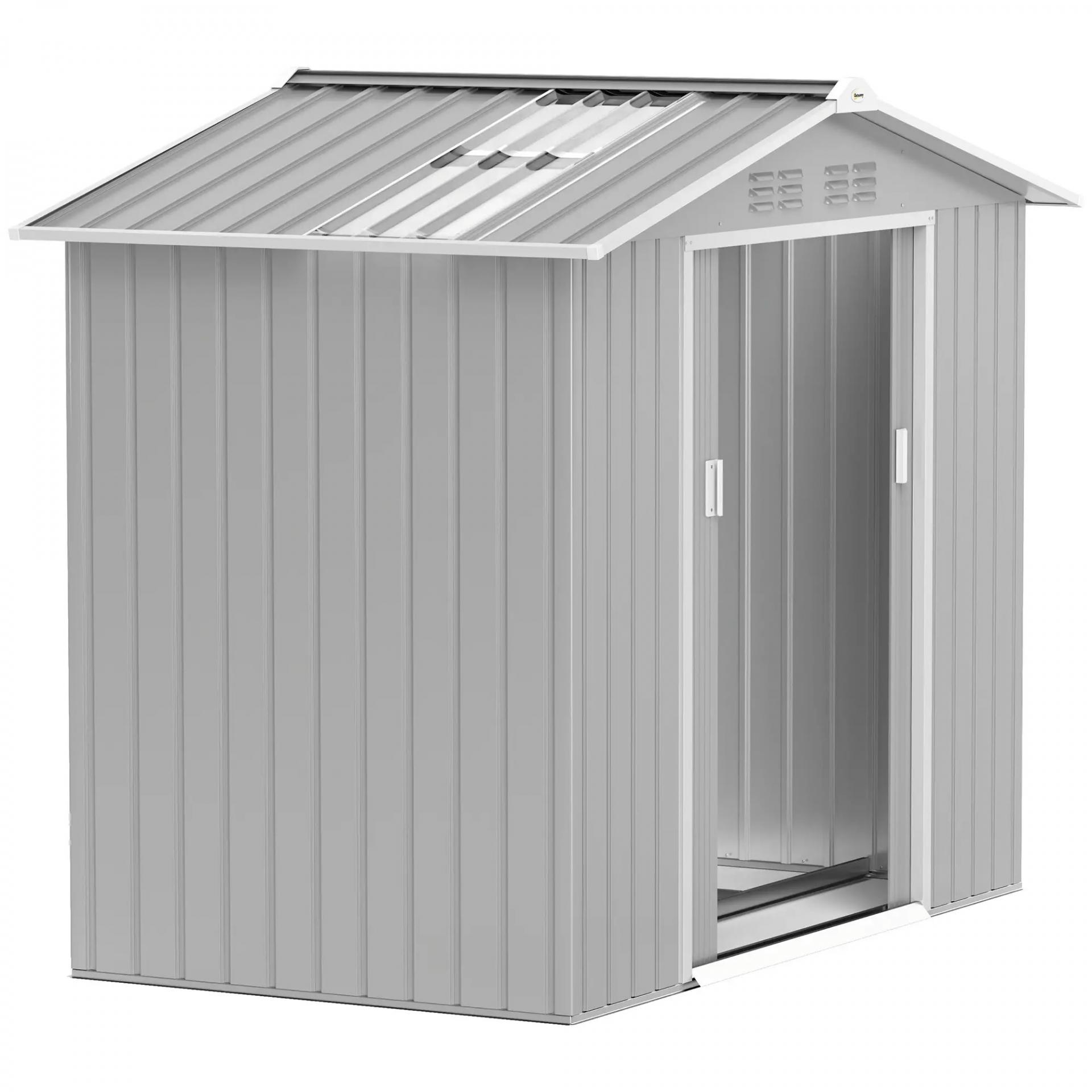 Caseta de Jardín 213x130x185 cm con Puertas Correderas y Claraboya para Almacenamiento de Herramientas Gris Plata