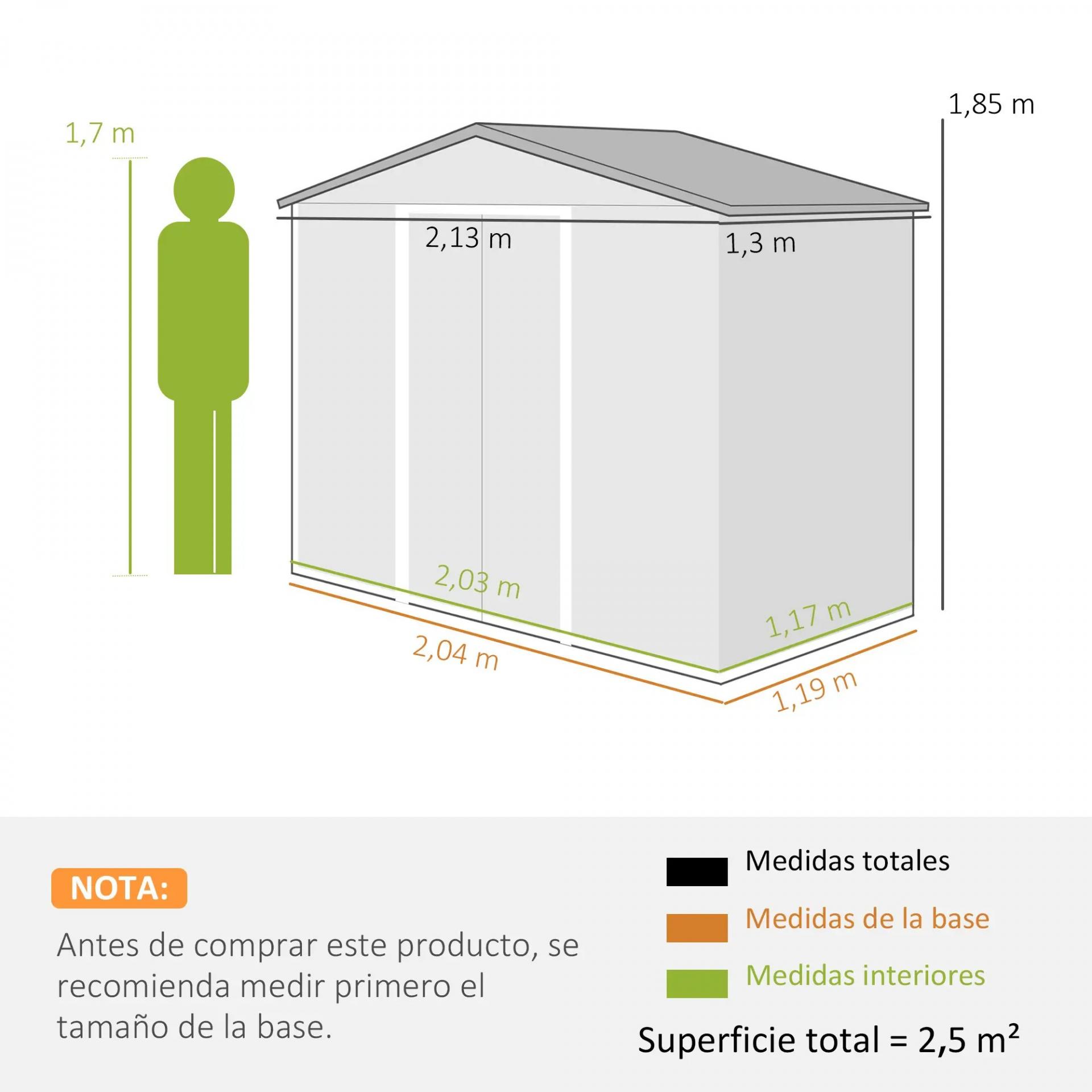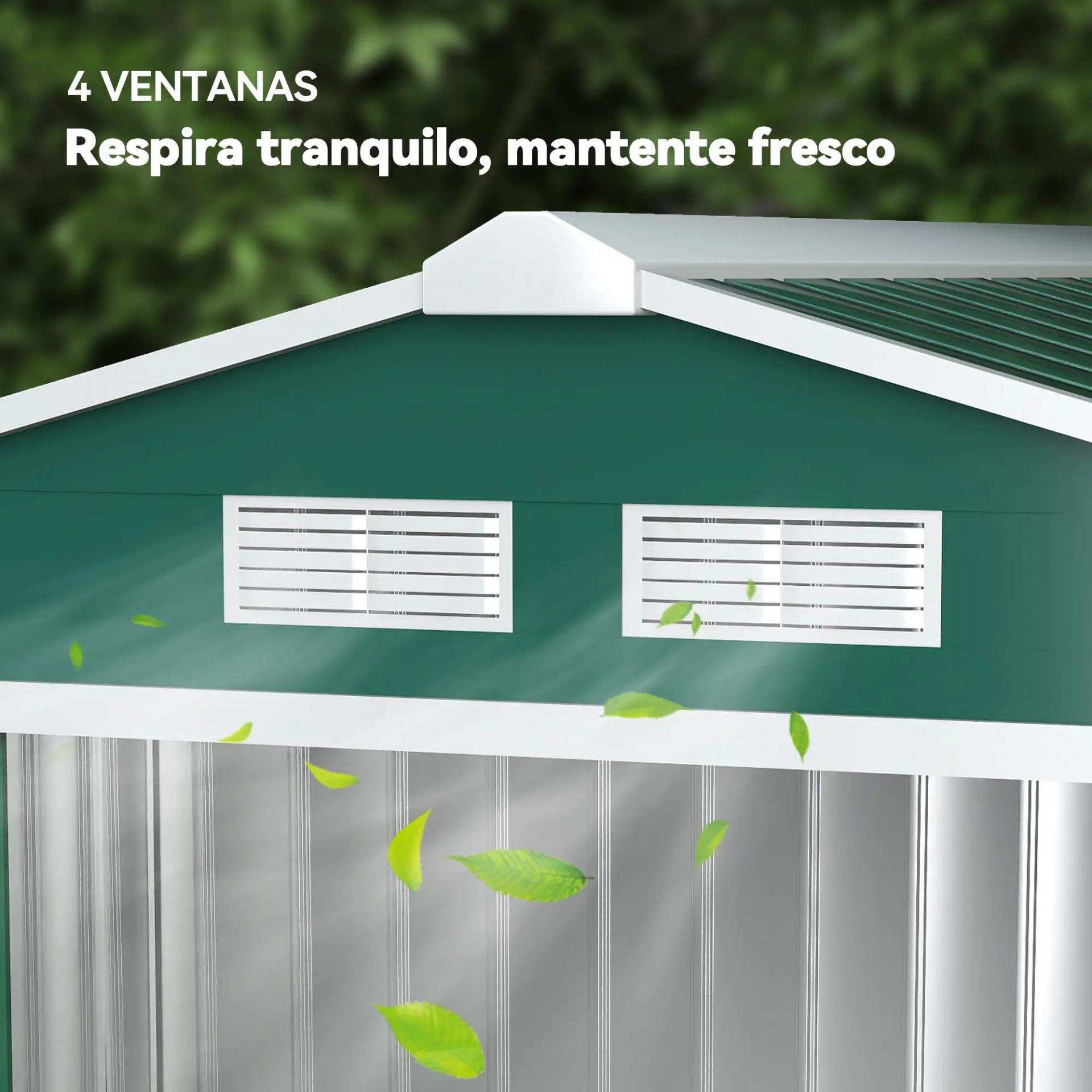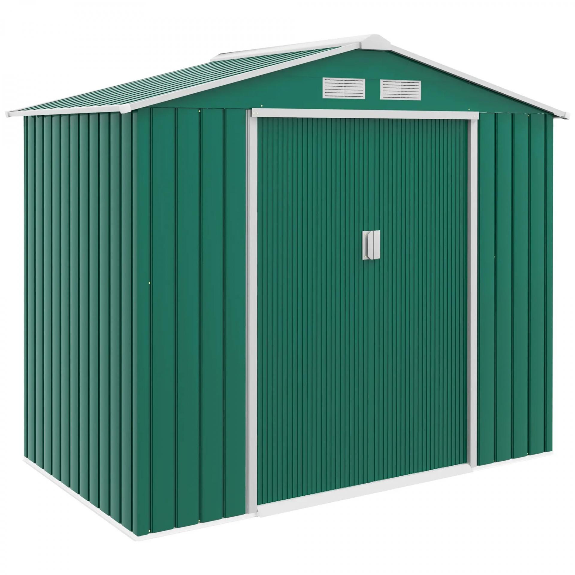 Caseta de Jardín 213x130x185 cm Cobertizo Metálico de Exterior para Almacenamiento de Herramientas Verde Oscuro