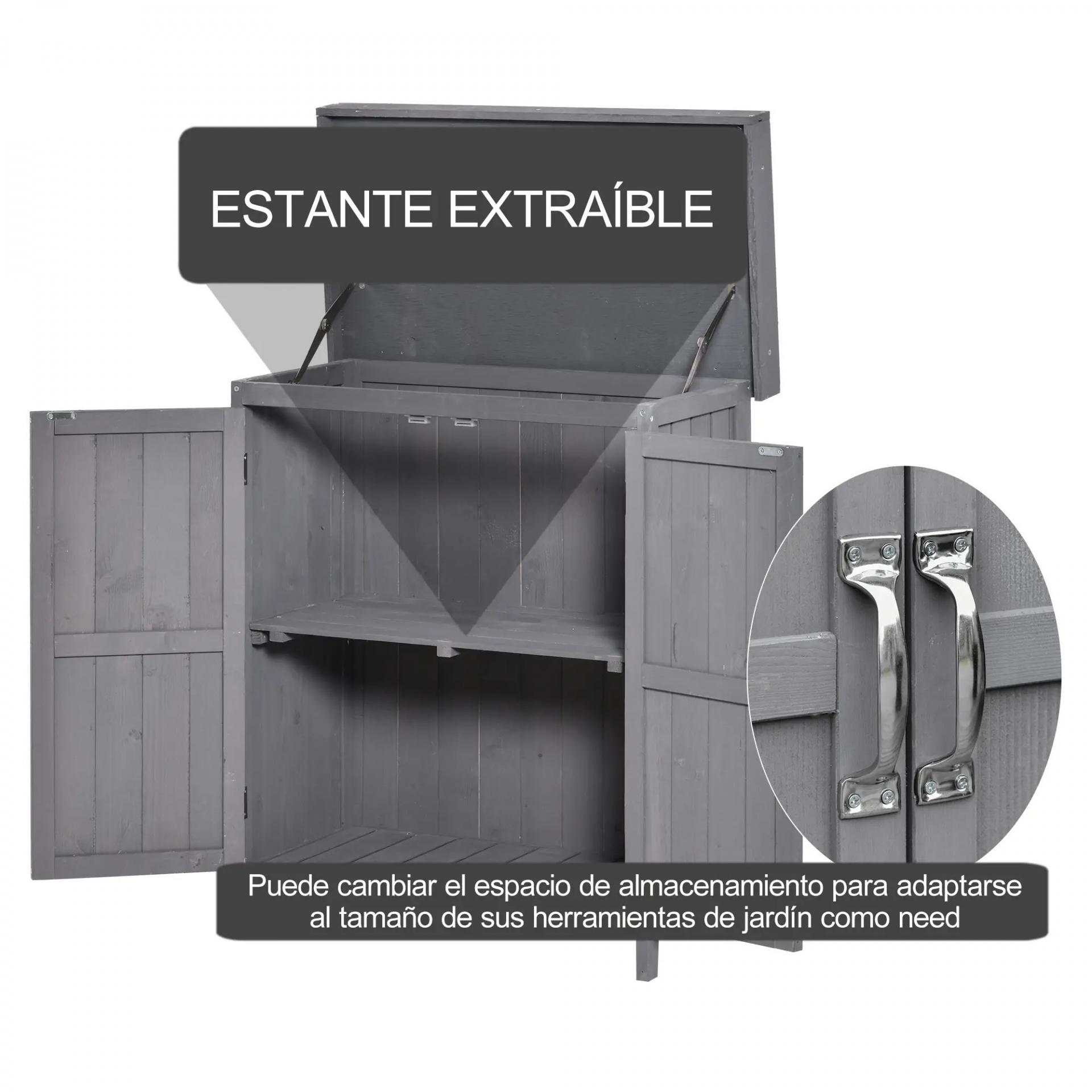 Cobertizo de Almacenamiento de Madera para Jadín 74x43x88 cm con 2 Puertas y Techo Asfáltico Abatible Gris