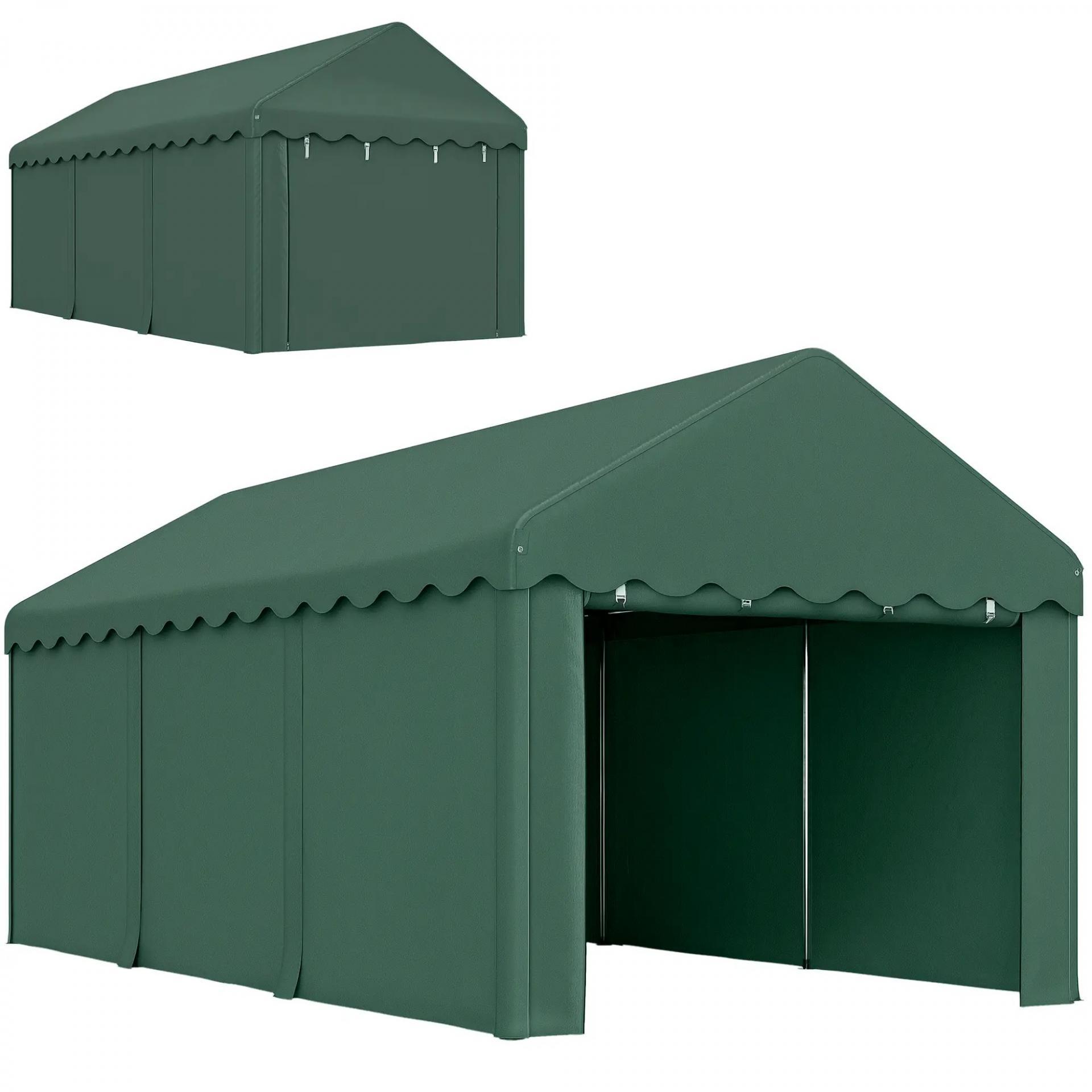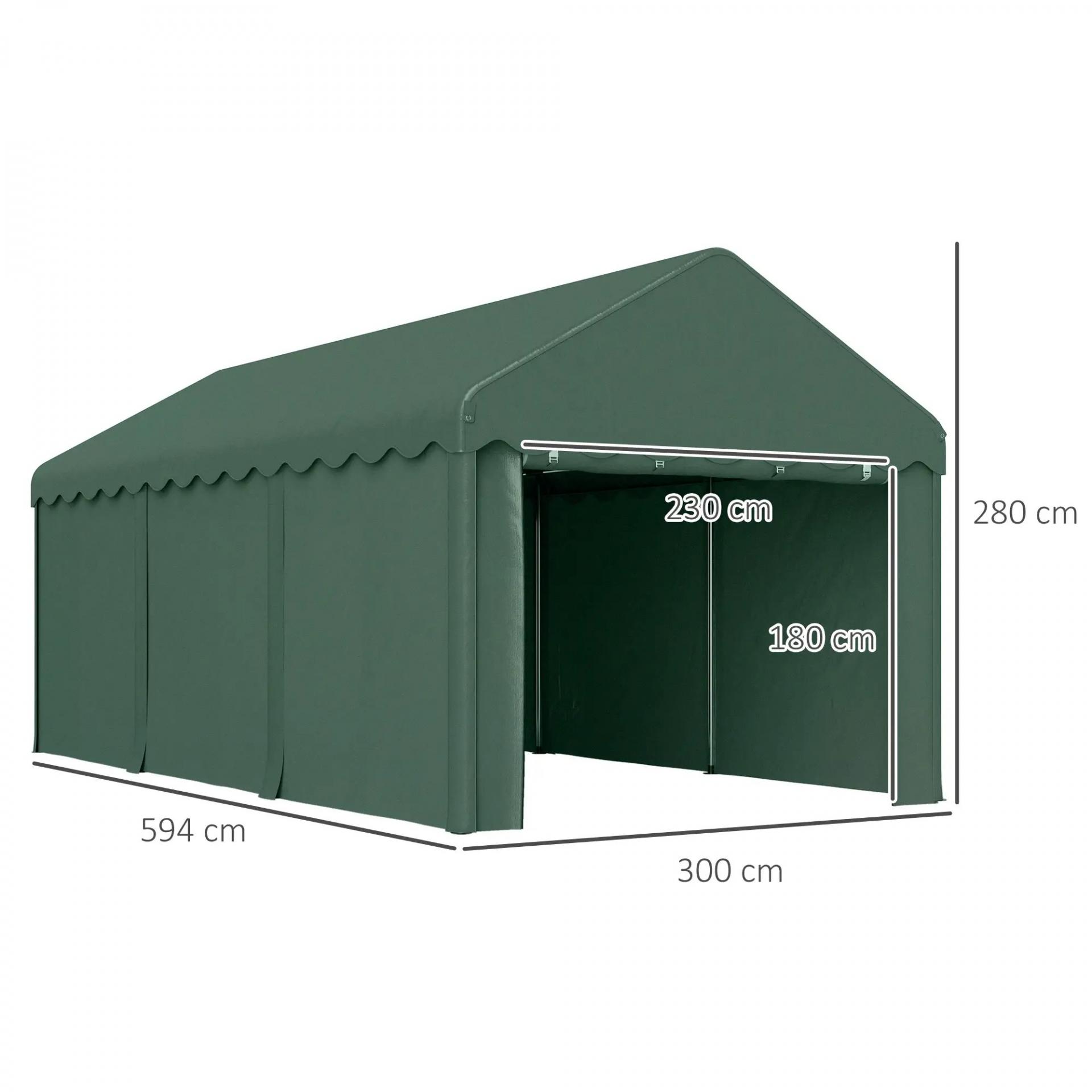 Garaje Exterior para Coche 6x3 m Impermeable Anti-UV con Paredes Laterales Desmontables y 2 Puertas con Cremallera Verde