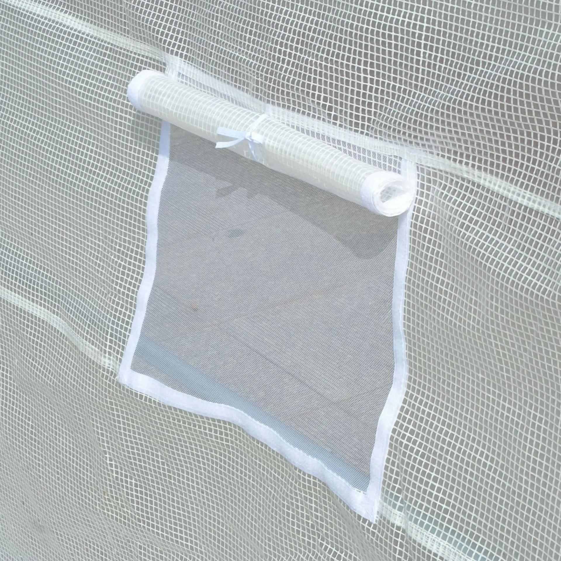 - PUERTA Y VENTANAS ENROLLABLES: La puerta enrollable de invernadero de jardín con cremallera se puede abrir completamente para facilitar el acceso y el transporte de plantas o herramientas. Las ventanas de malla enrollable proporcionan una mejor circulación de aire para las plantas y se pueden usar para observar desde fuera el crecimiento de las plantas