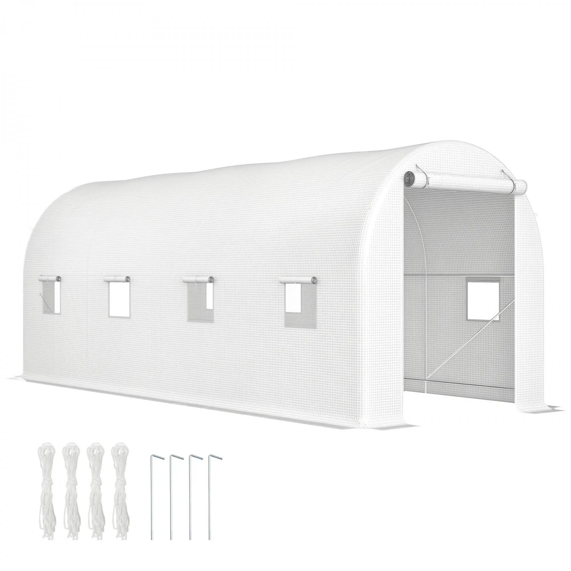Invernadero de Túnel 500x200x205 cm Invernadero de Jardín con Puerta Enrollable y 8 Ventanas Cubierta PE 140 g/m² Blanco