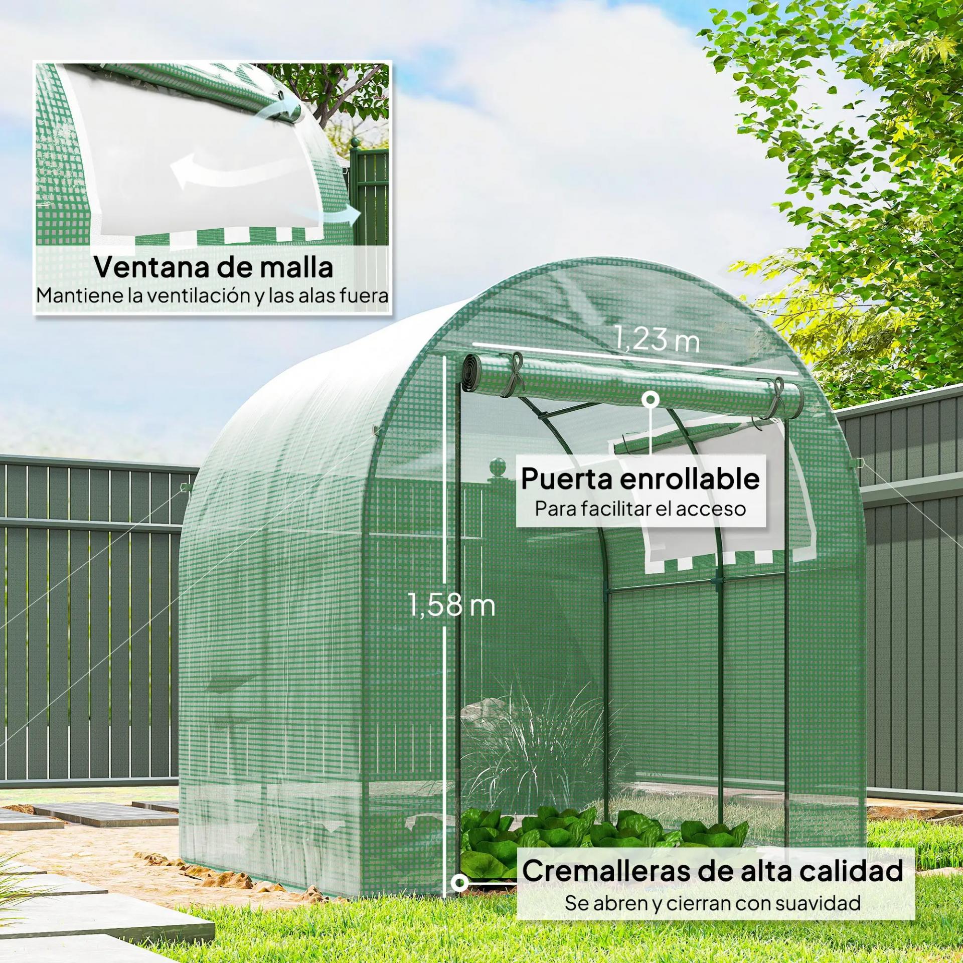 Invernadero de Jardín 180x180x200 cm Invernadero de Túnel Pequeño con Puerta Enrollable y Ventana de Malla Verde