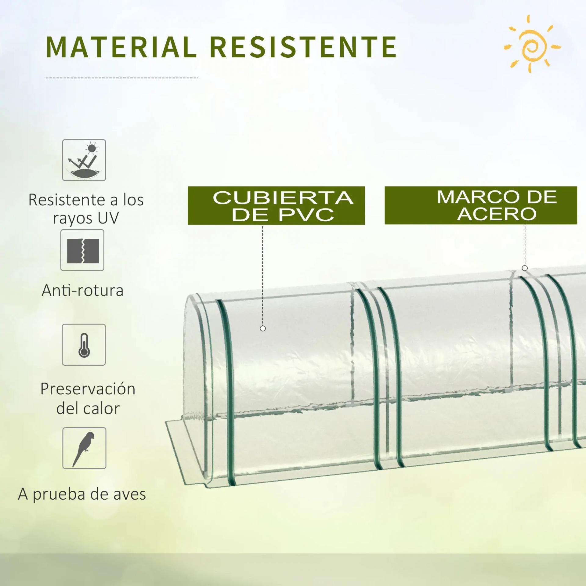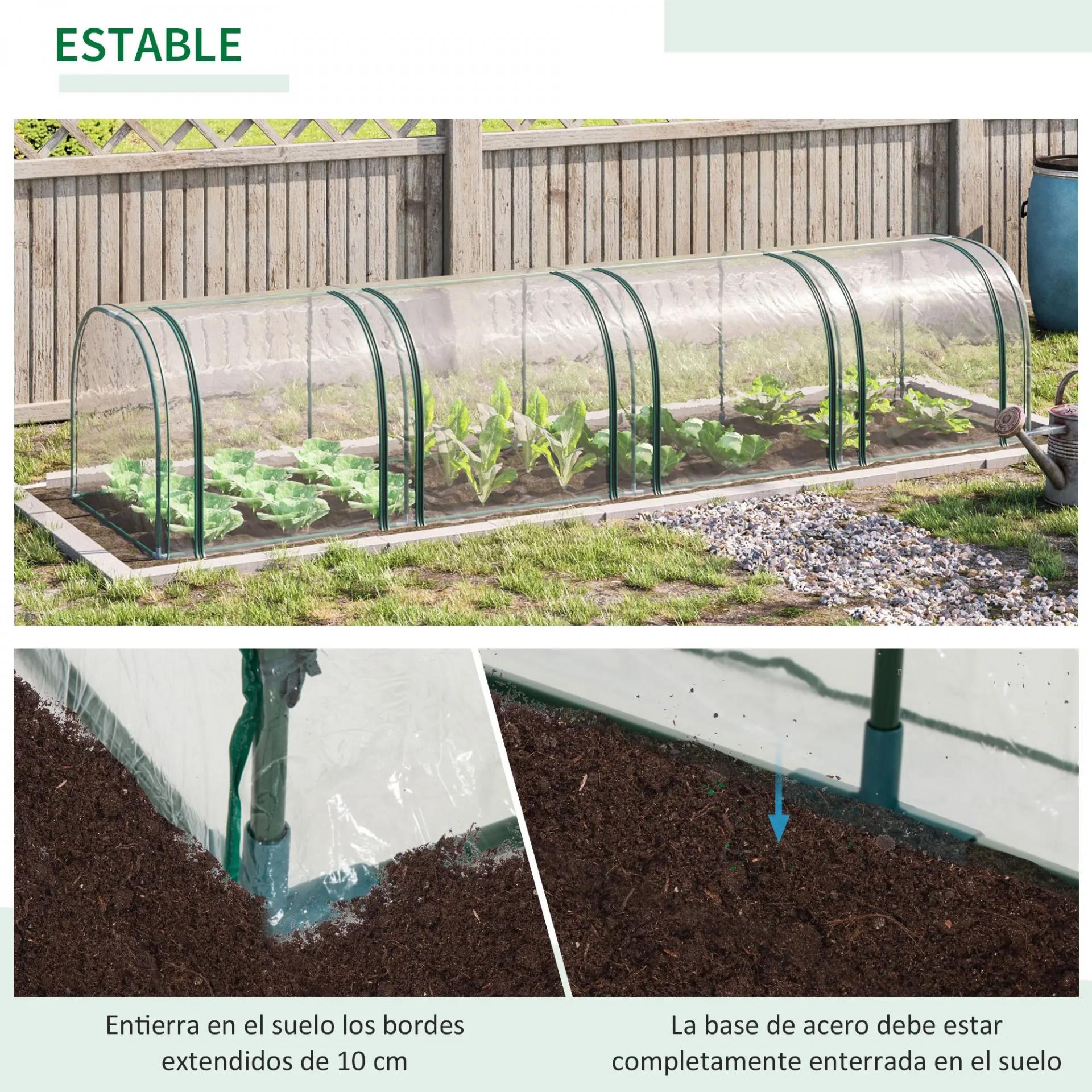 Invernadero para Jardín Terraza 395x100x80 cm para Cultivo de Plantas Tipo Túnel Marco Acero y PVC Transparente y Verde