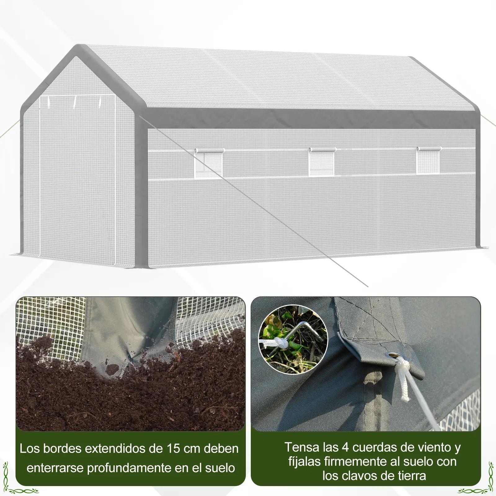 - ESTABILIDAD MEJORADA: Bordes extendidos de 15 cm para enterrar, junto con cuerdas y piquetas, aseguran que el invernadero permanezca firme incluso en condiciones de viento.