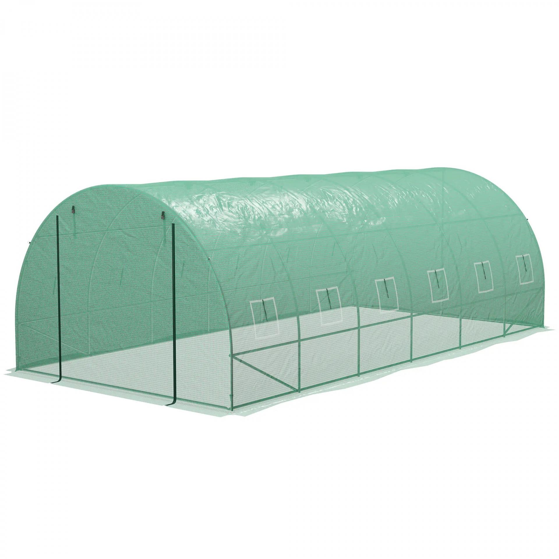 Invernadero de Túnel 6x3x2 m con Sistema de Riego Integrado 12 Ventanas con Malla y 1 Puerta Enrollable Verde