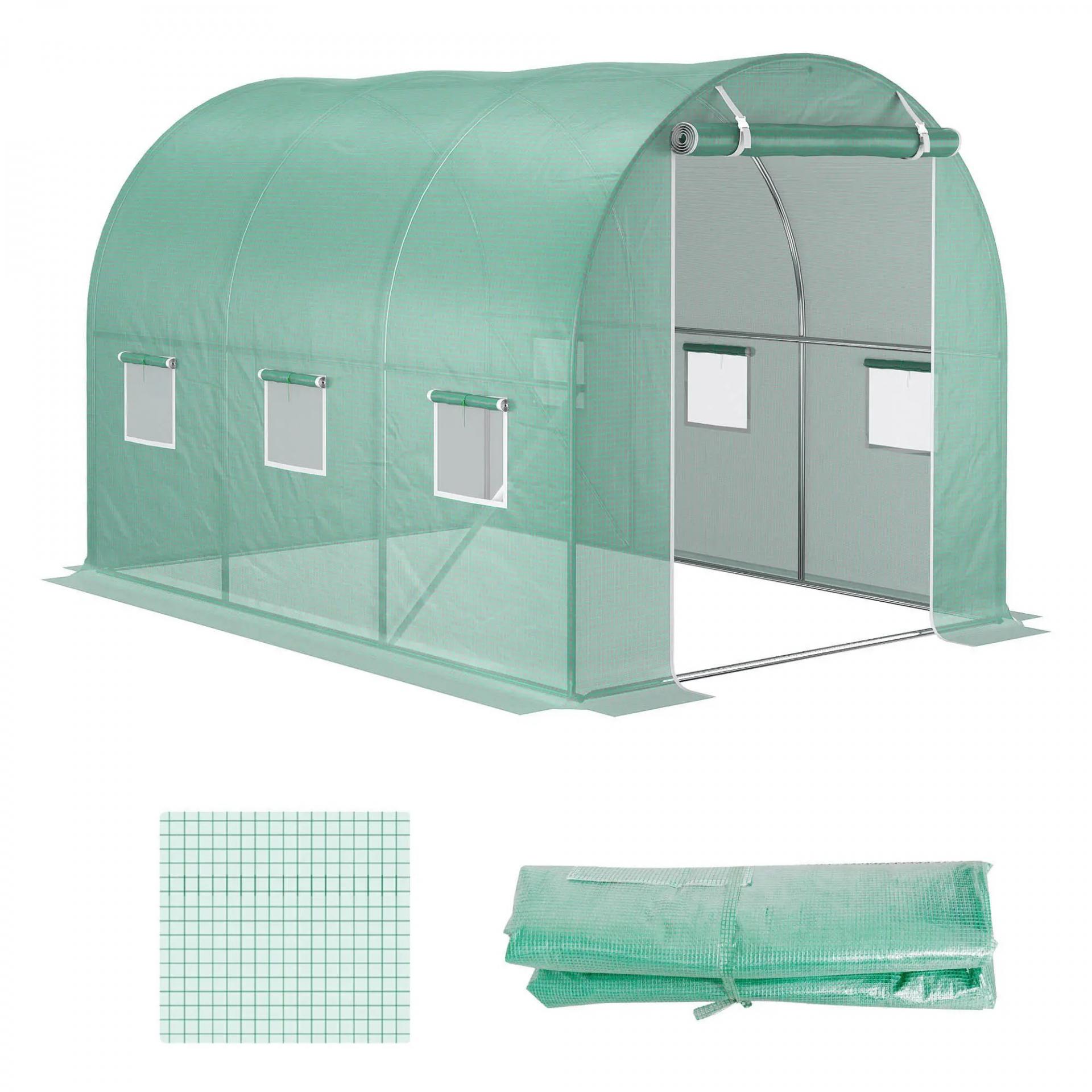 Plásticos para Invernaderos 3x2x2 m Cubierta de Repuesto para Invernadero de Polietileno con 6 Ventanas y Puerta Enrollable Protección de Plantas para Jardín Verde
