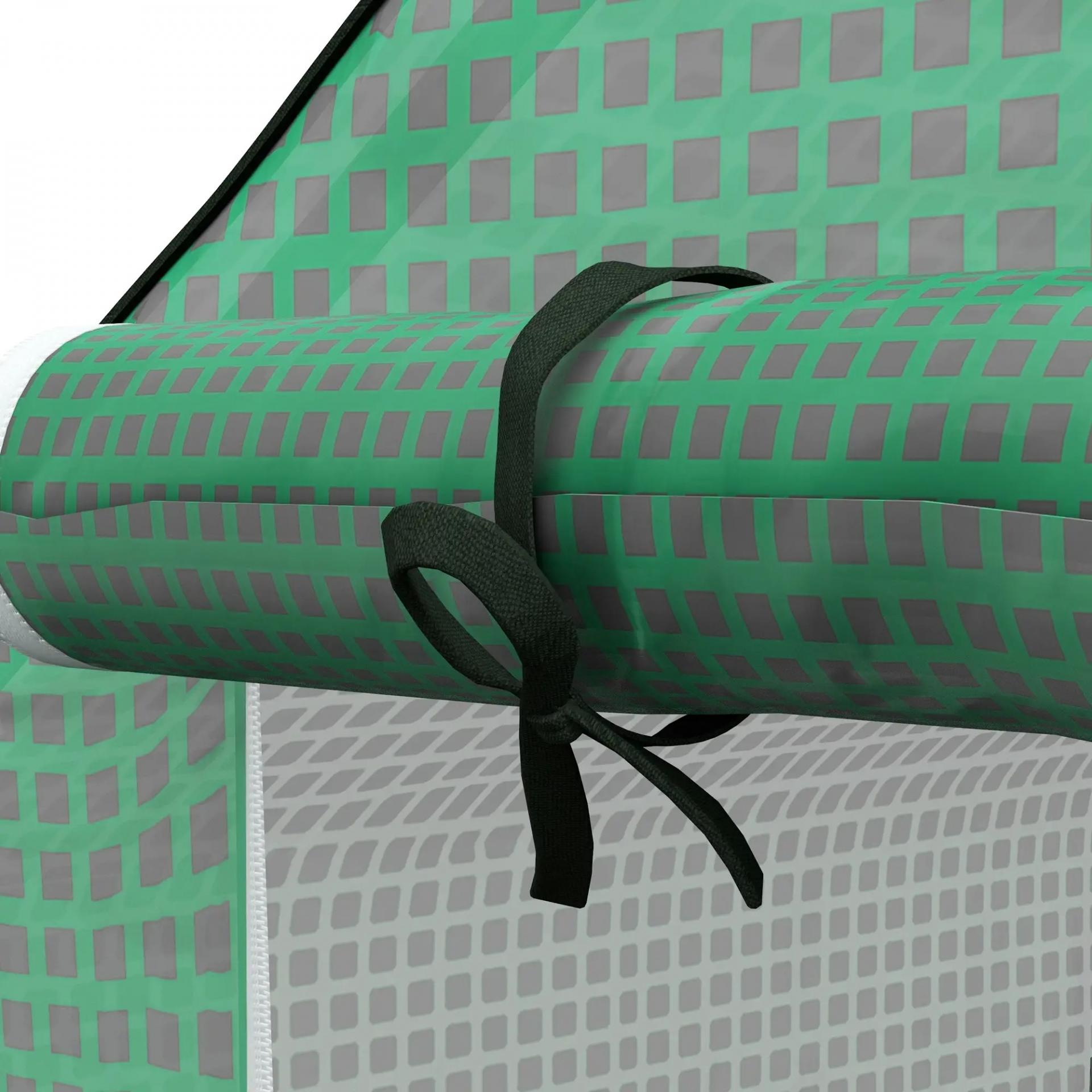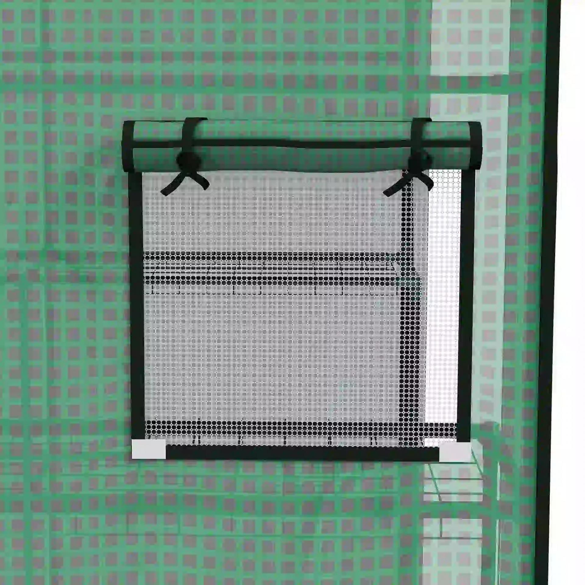 - PUERTA Y VENTANAS ENROLLABLES: El invernadero incluye una puerta enrollable con cremallera y ventanas de malla laterales que mantienen alejados los insectos. Sus aberturas facilitan la ventilación y ayudan a regular la temperatura y la humedad interior