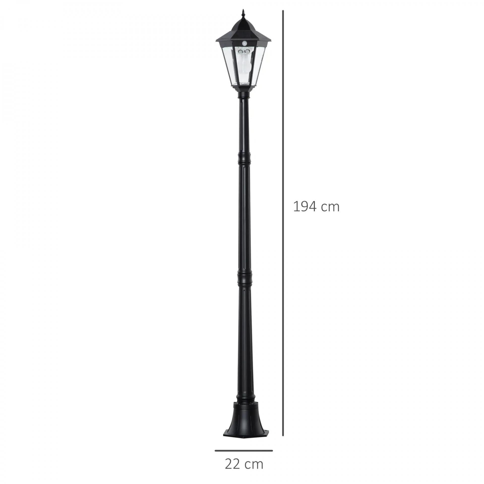 Farola Solar Luz Solar de Exterior con Panel Solar Encendido y Apagado Automático IP44 22x22x194 cm Negro