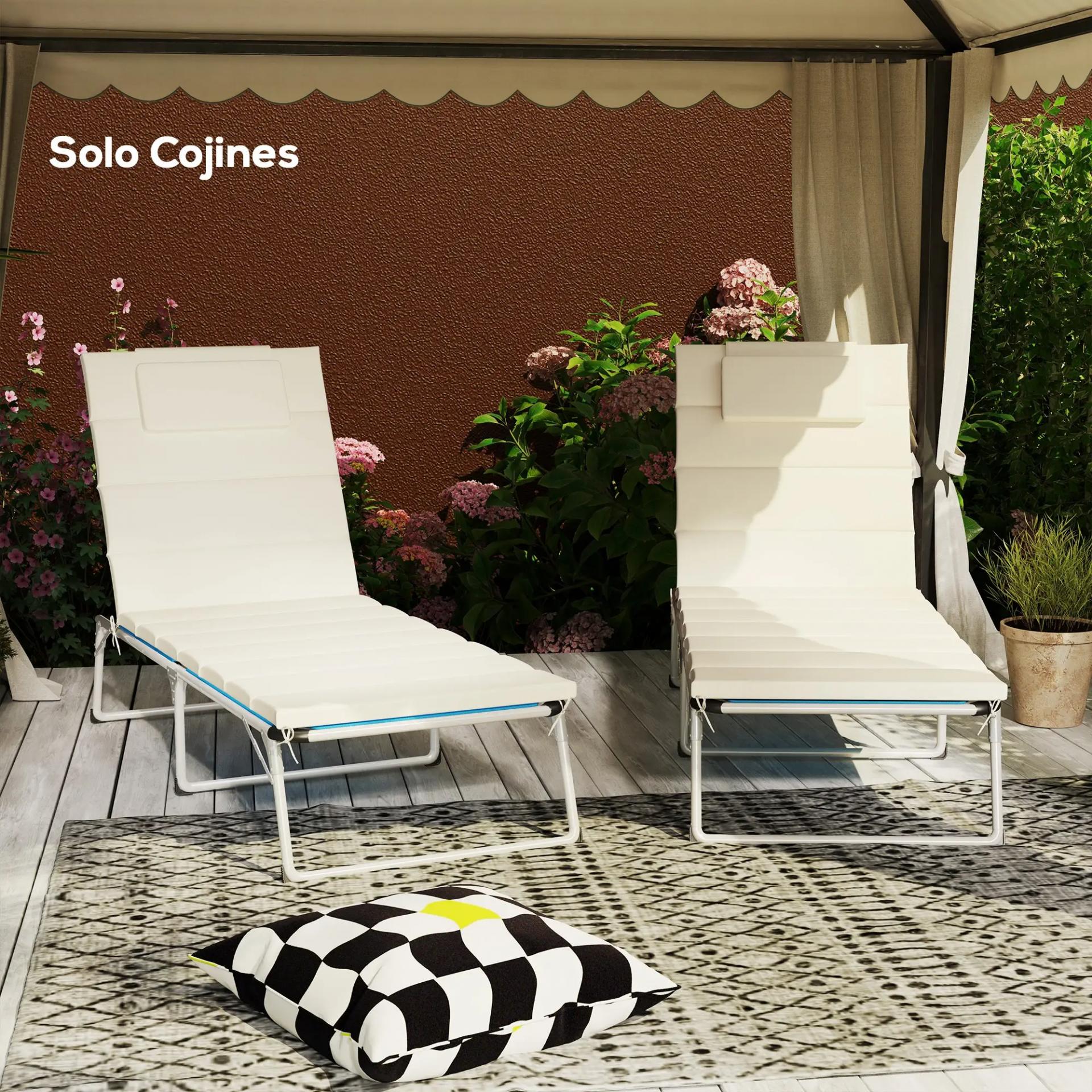 - MÁXIMO CONFORT: Los cojines para tumbonas exteriores ofrecen espuma de alta resistencia 25D, proporcionando excelente confort. Con apoyo para la cabeza integrado, son ideales para descansar y recuperan fácilmente su forma después de su uso