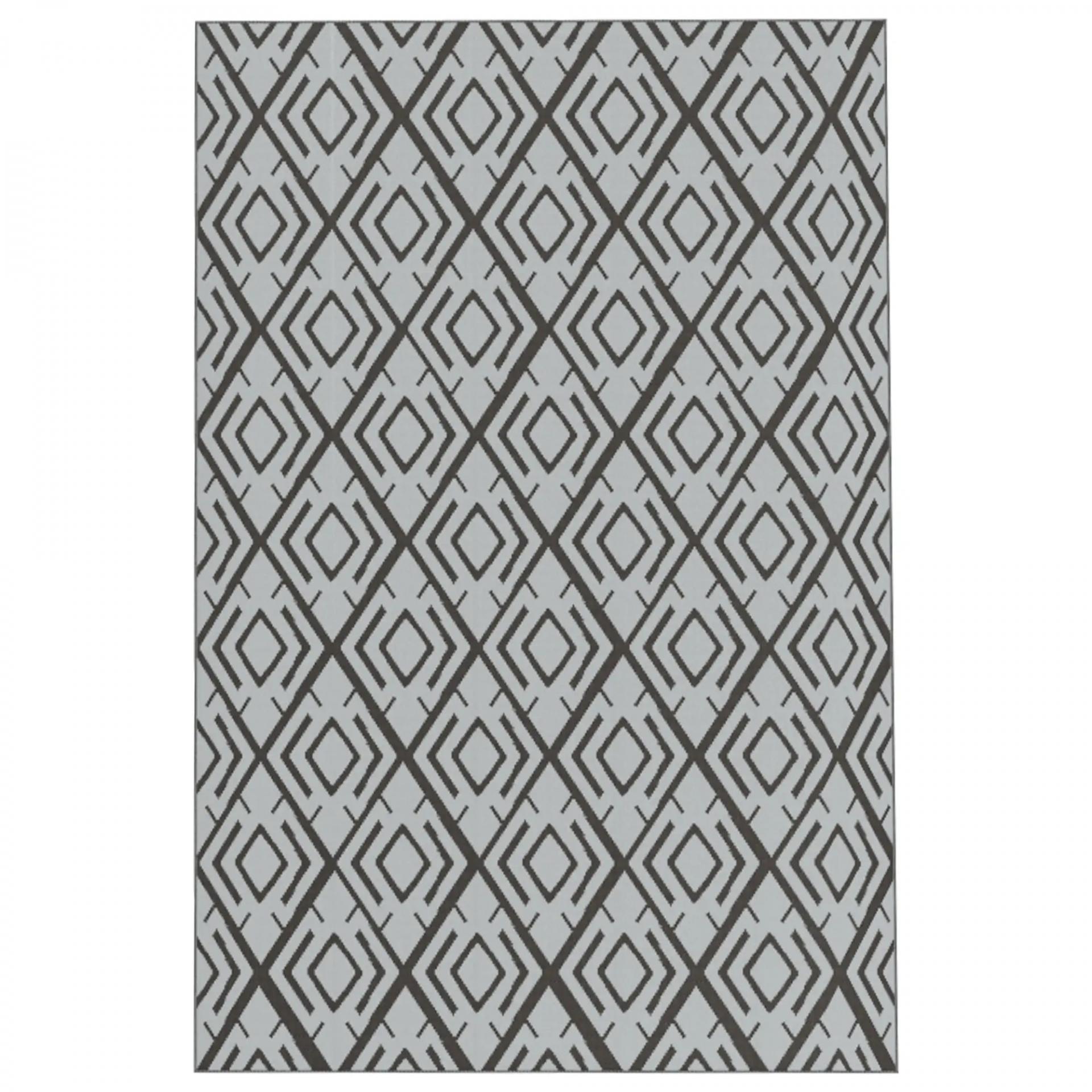 Alfombra de Exterior Reversible 182x274 cm con Patrón Geométrico de Rombos Impermeable Bolsa de Transporte Negro