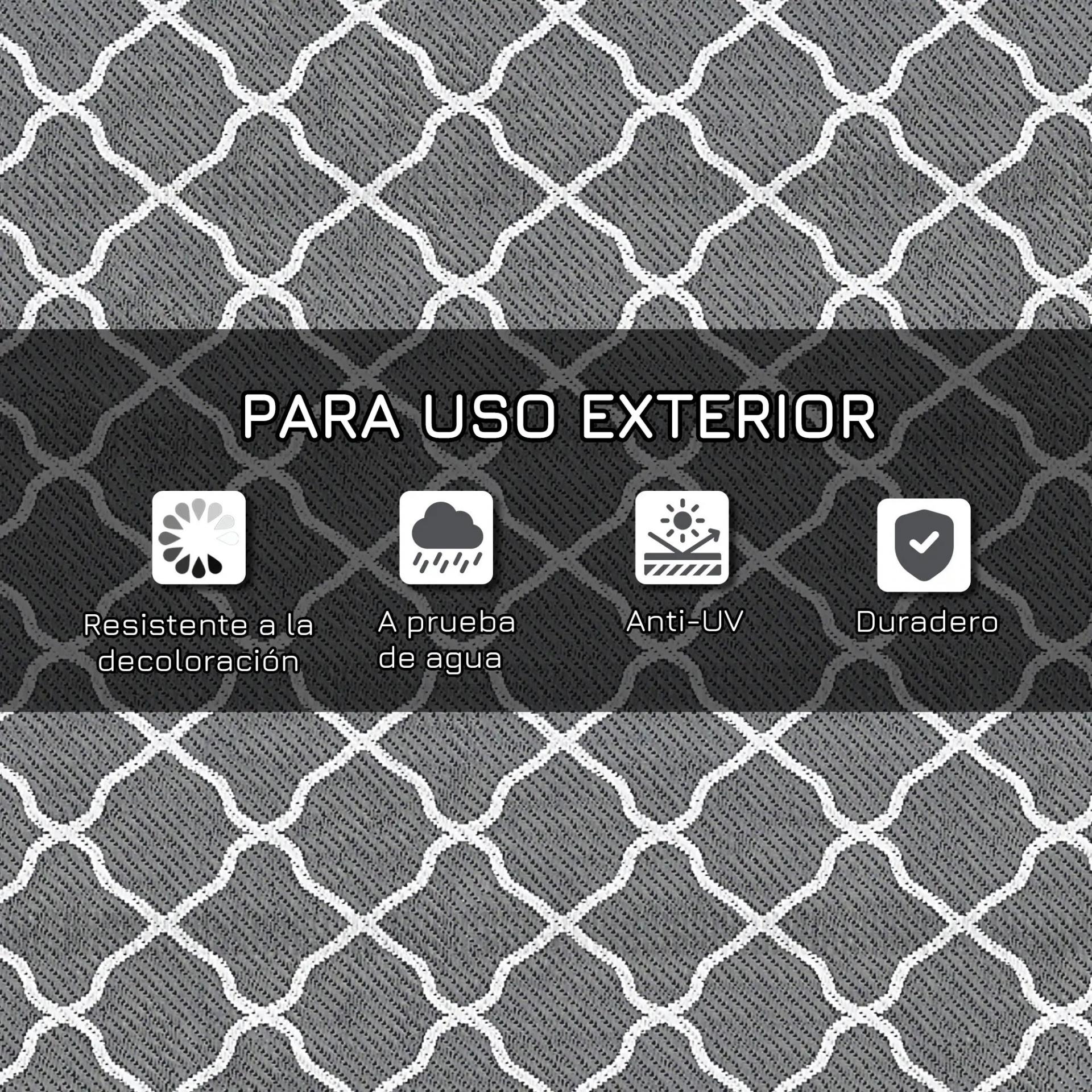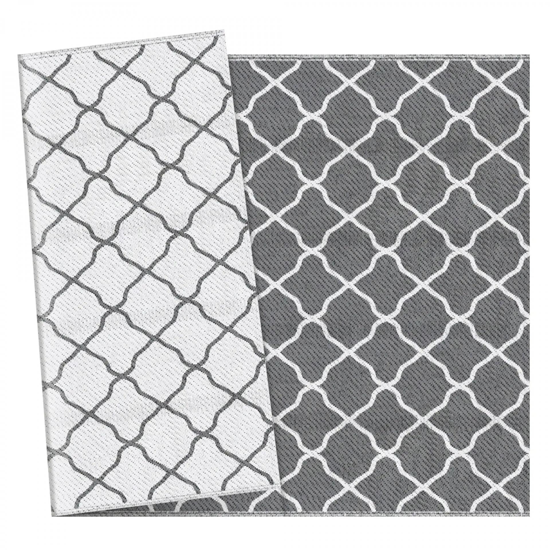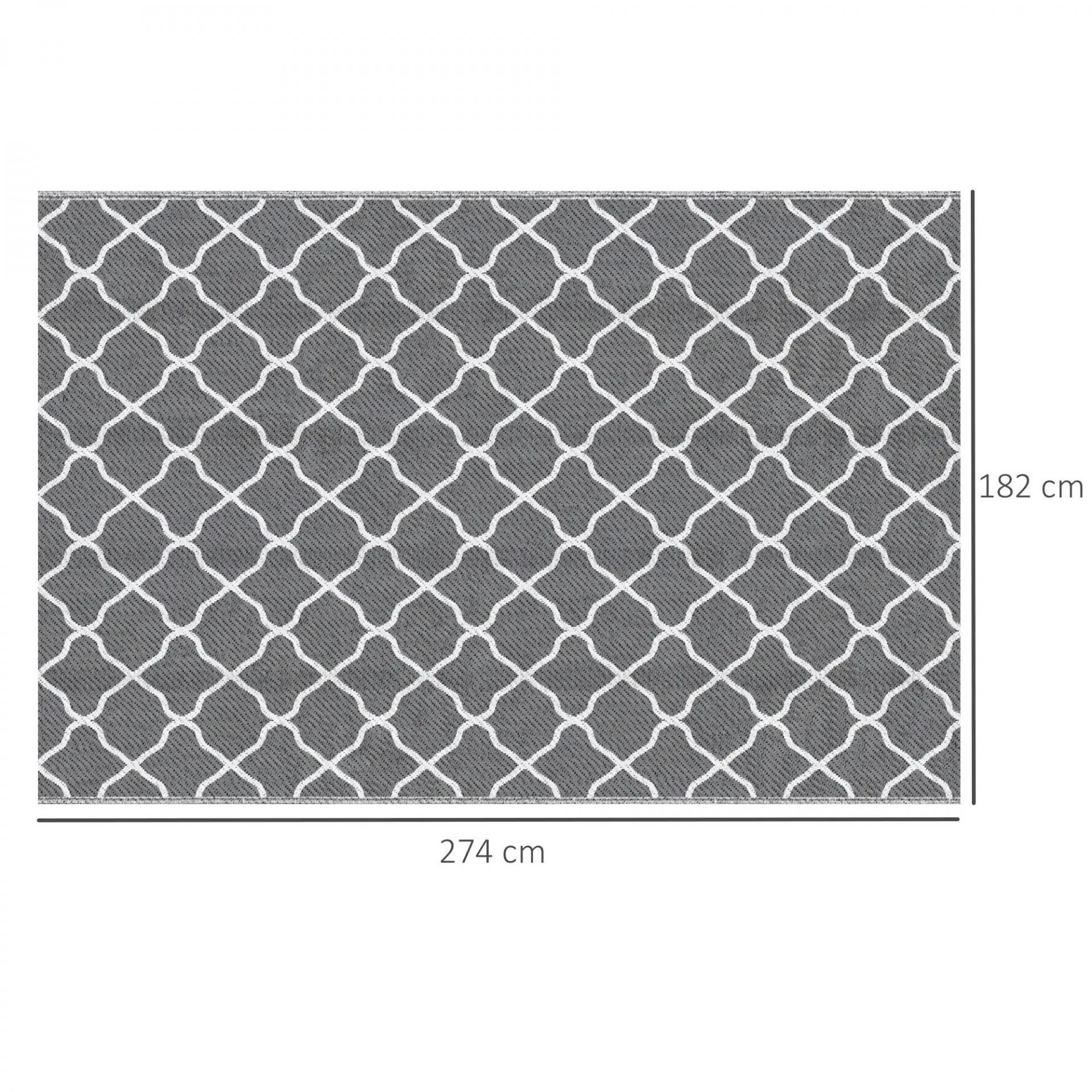 Alfombra Exterior Reversible 182x274 cm de Plástico Impermeable para Terraza Patio Camping Playa Gris y Blanco