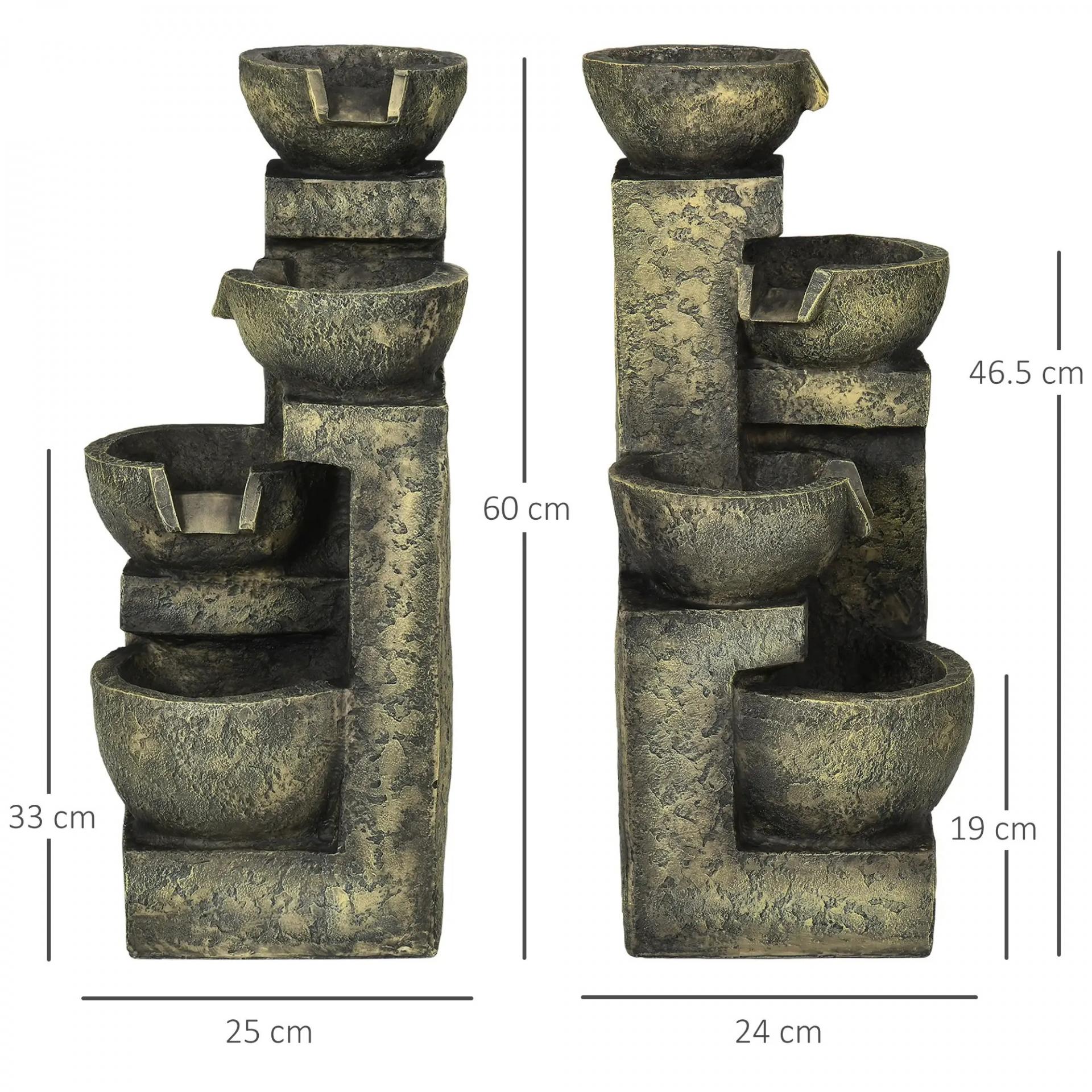 Fuente de Agua en Cascada de 4 Niveles 5W con Bomba de Agua y Salida de Agua Ajustable 25x24x60 cm Multicolor