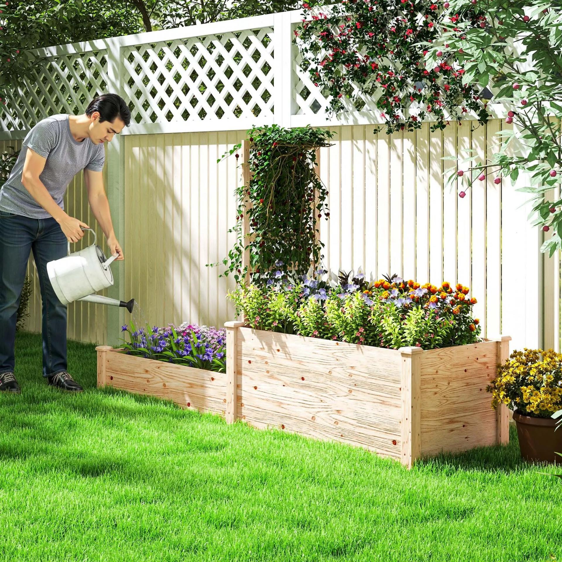 OPCIONES DE CULTIVO VERSÁTILES: Esta jardinera elevada de madera incluye un divisor que crea dos áreas de cultivo diferentes, ideal para plantas con distintas necesidades de profundidad de raíz. Perfecta para flores, hierbas o vegetales
