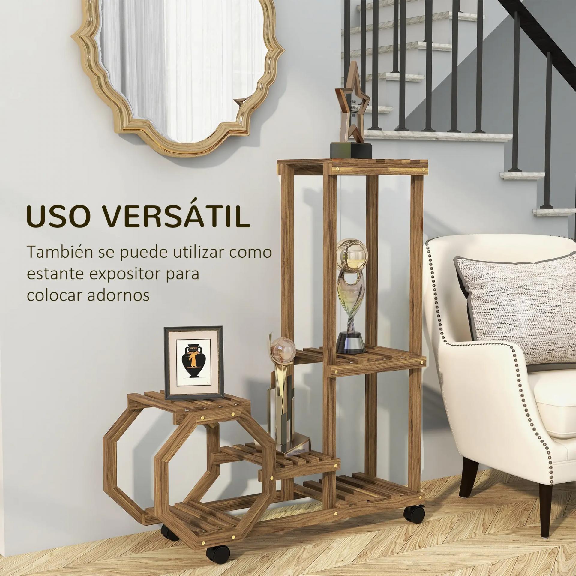 - ESTRUCTURA DE MADERA: Este soporte para macetas es fabricado en madera de abeto, tiene una estructura resistente con superficie tratada para proteger de la humedad y los insectos. Puede ser utilizada tanto en interiores como en exteriores