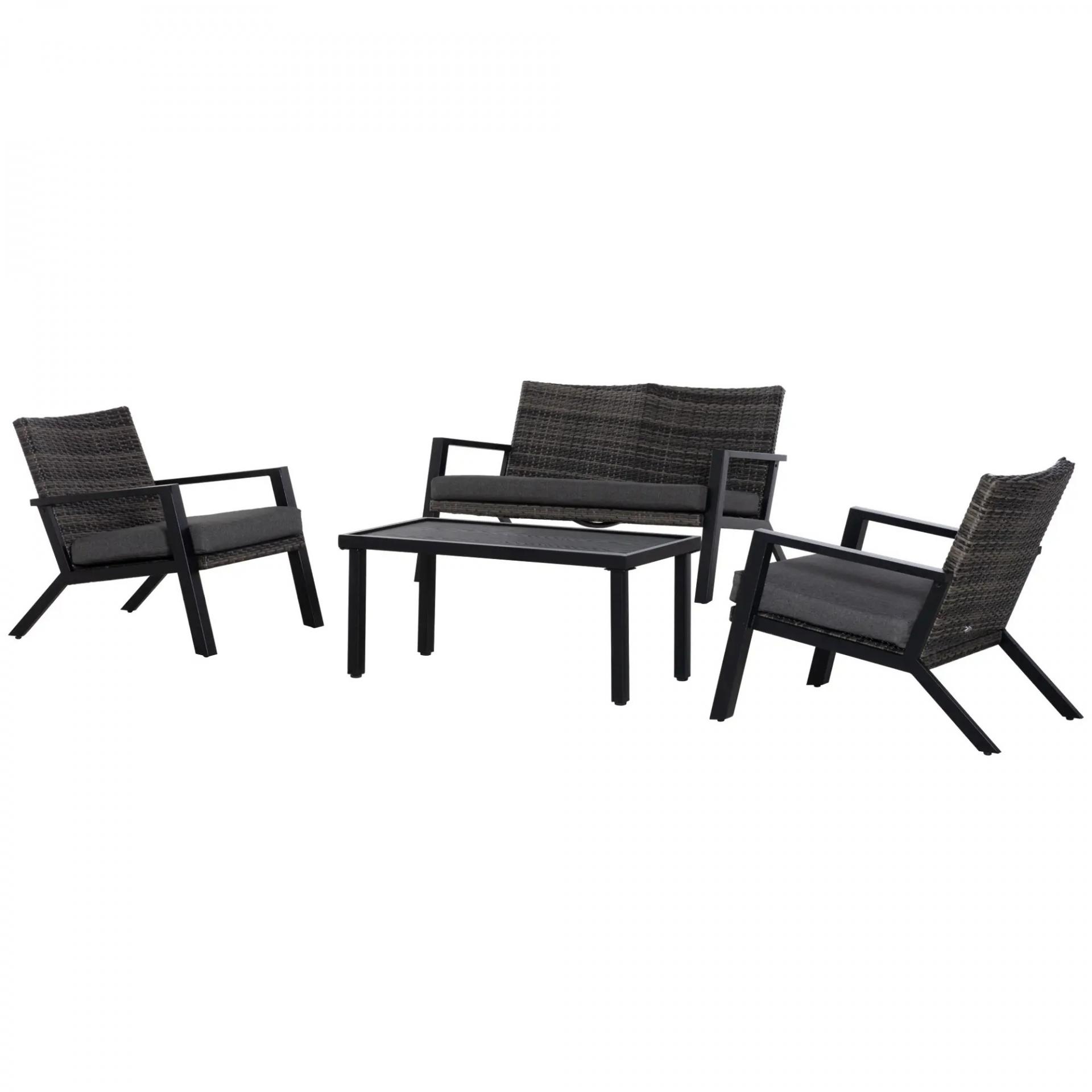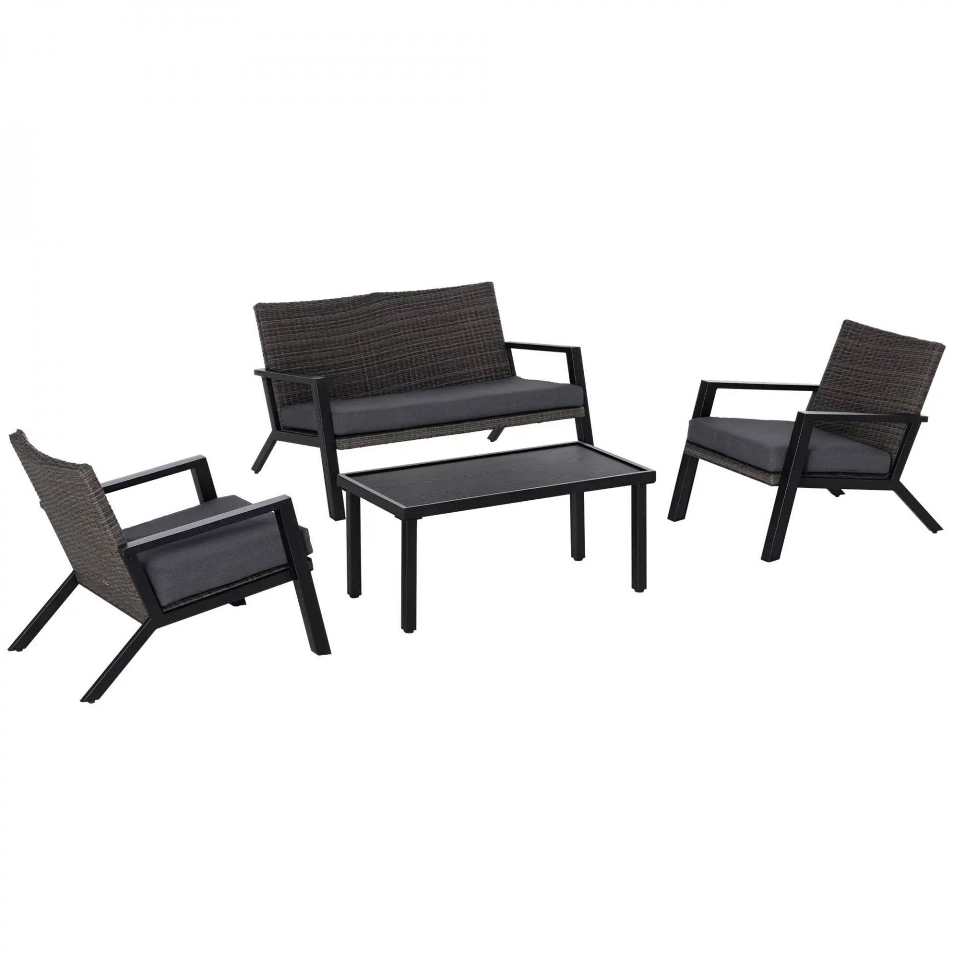 CONJUNTO DE 4 PIEZAS: Juego de muebles de jardín de 4 piezas que consta de 1 sofá de dos plazas, 2 sillones individuales y 1 mesa de centro. Ideal para descansar en tu jardín en familia o con amigos