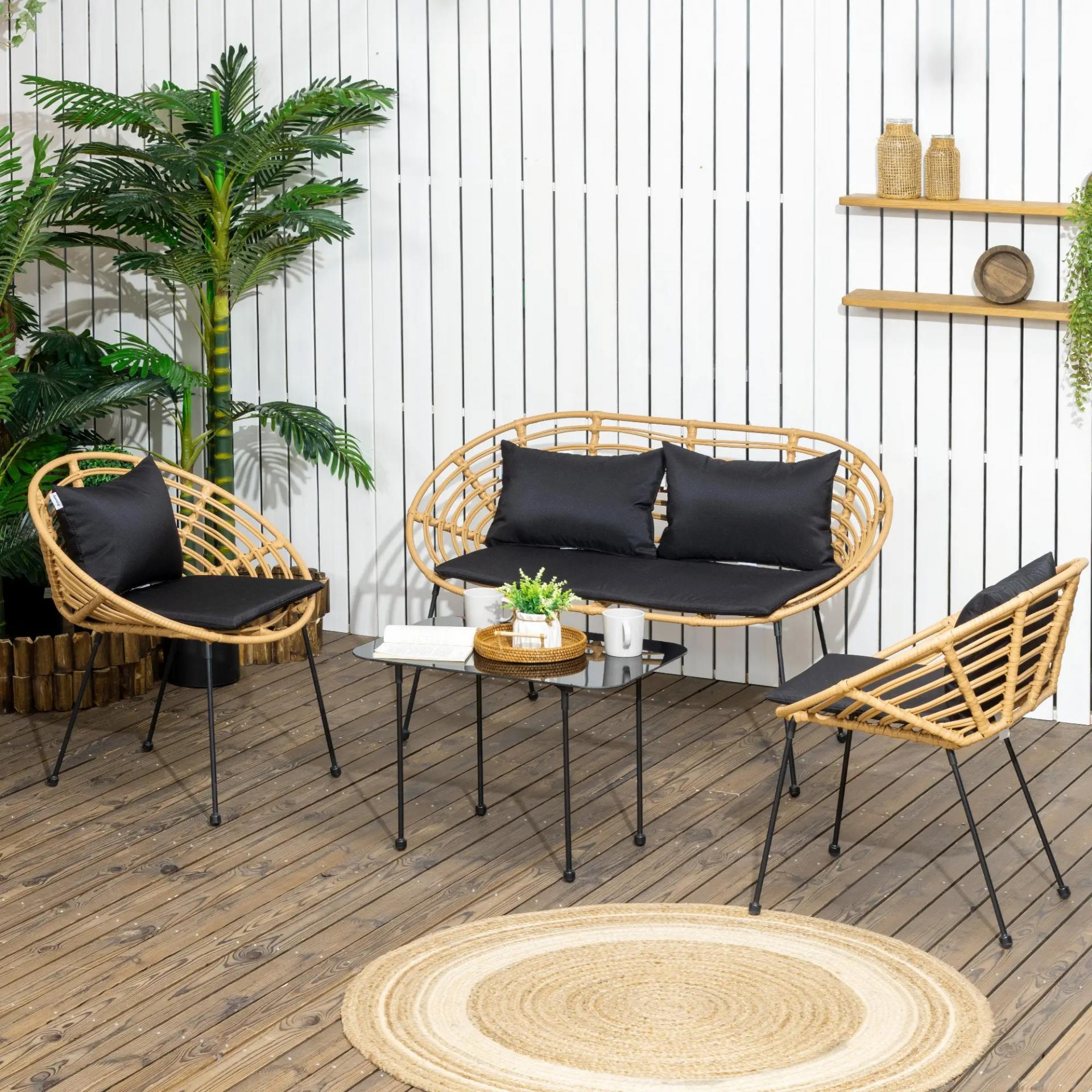 CONJUNTO PARA JARDÍN COMPLETO: Este conjunto de jardín elegante incluye un sofá de dos plazas, dos sillones y una mesa de centro combinada. Es ideal para disfrutar de un tiempo de calidad en el jardín con estilo y funcionalidad