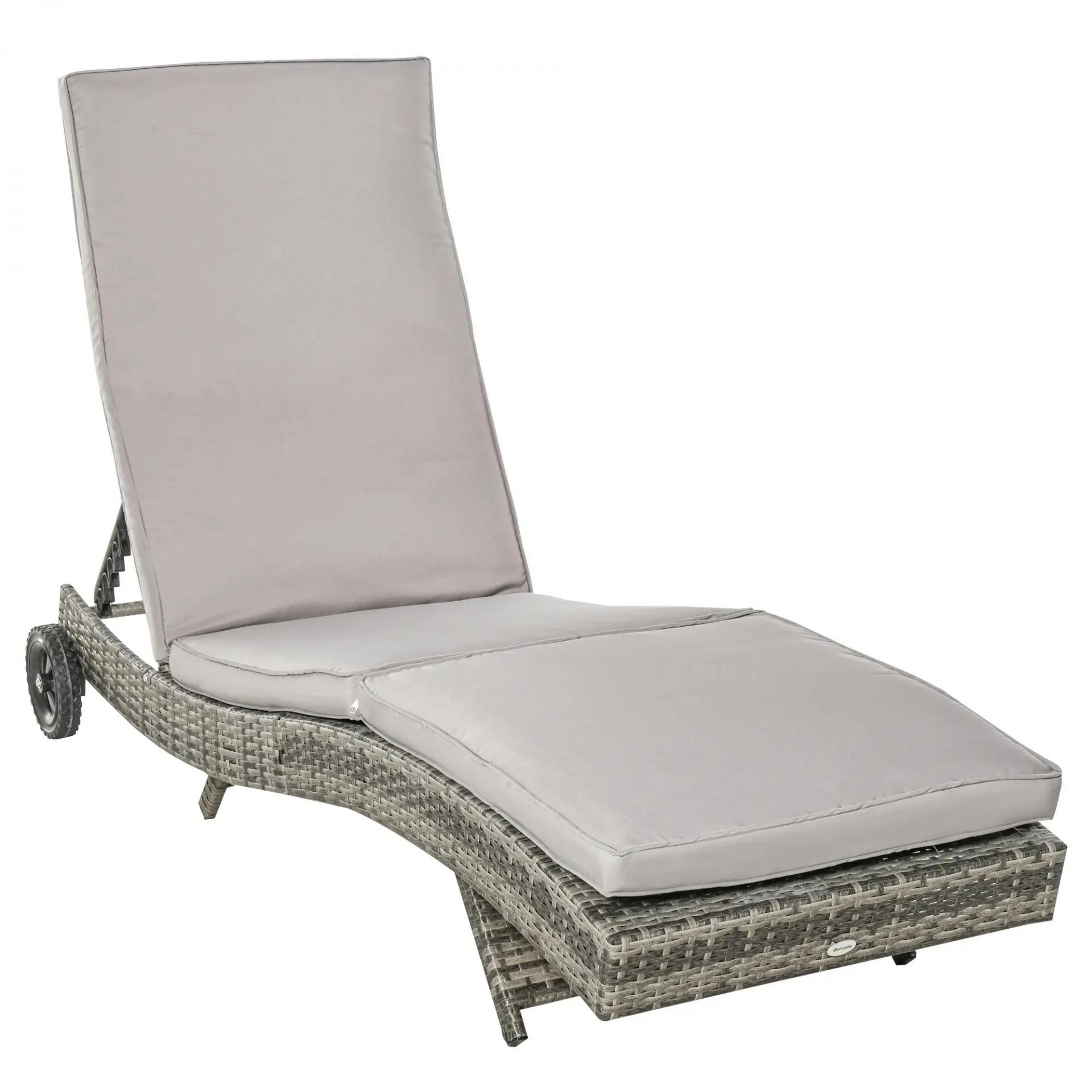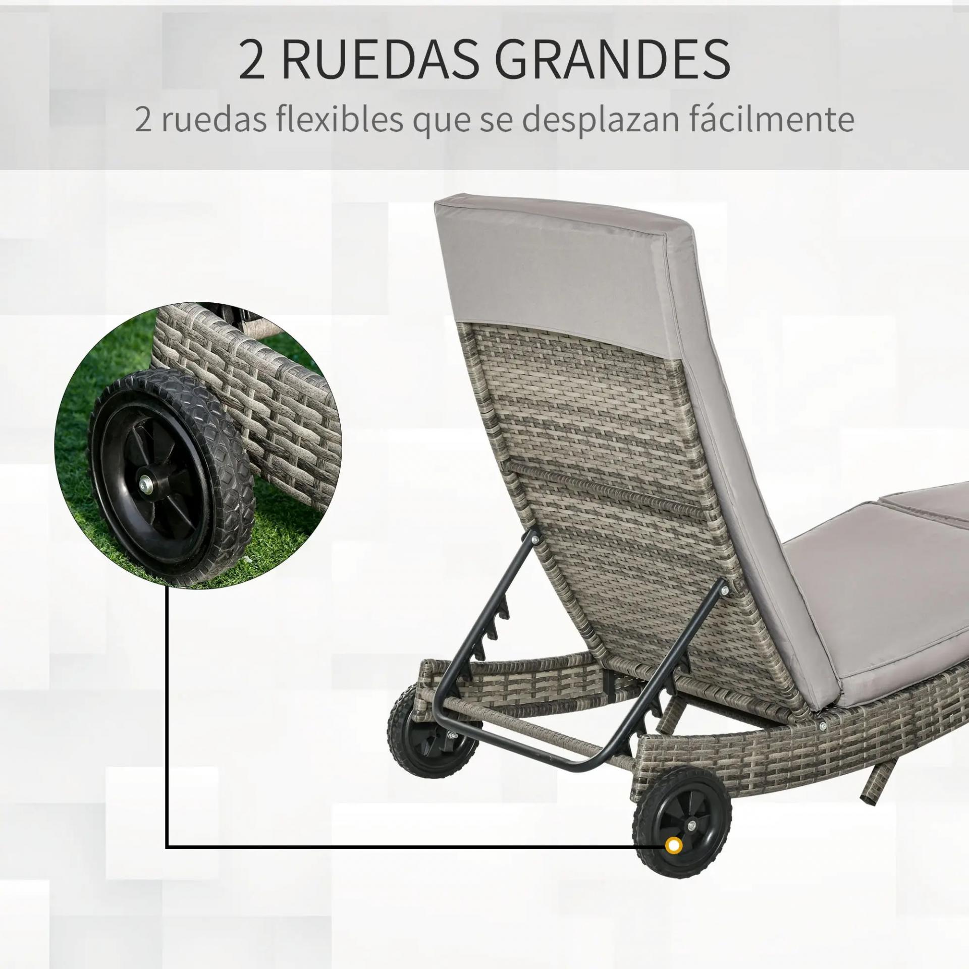 Tumbona de Jardín en Forma de S con 2 Ruedas Respaldo Ajustable en 5 Posiciones y Cojín Extraíble 207x70x70 cm Gris