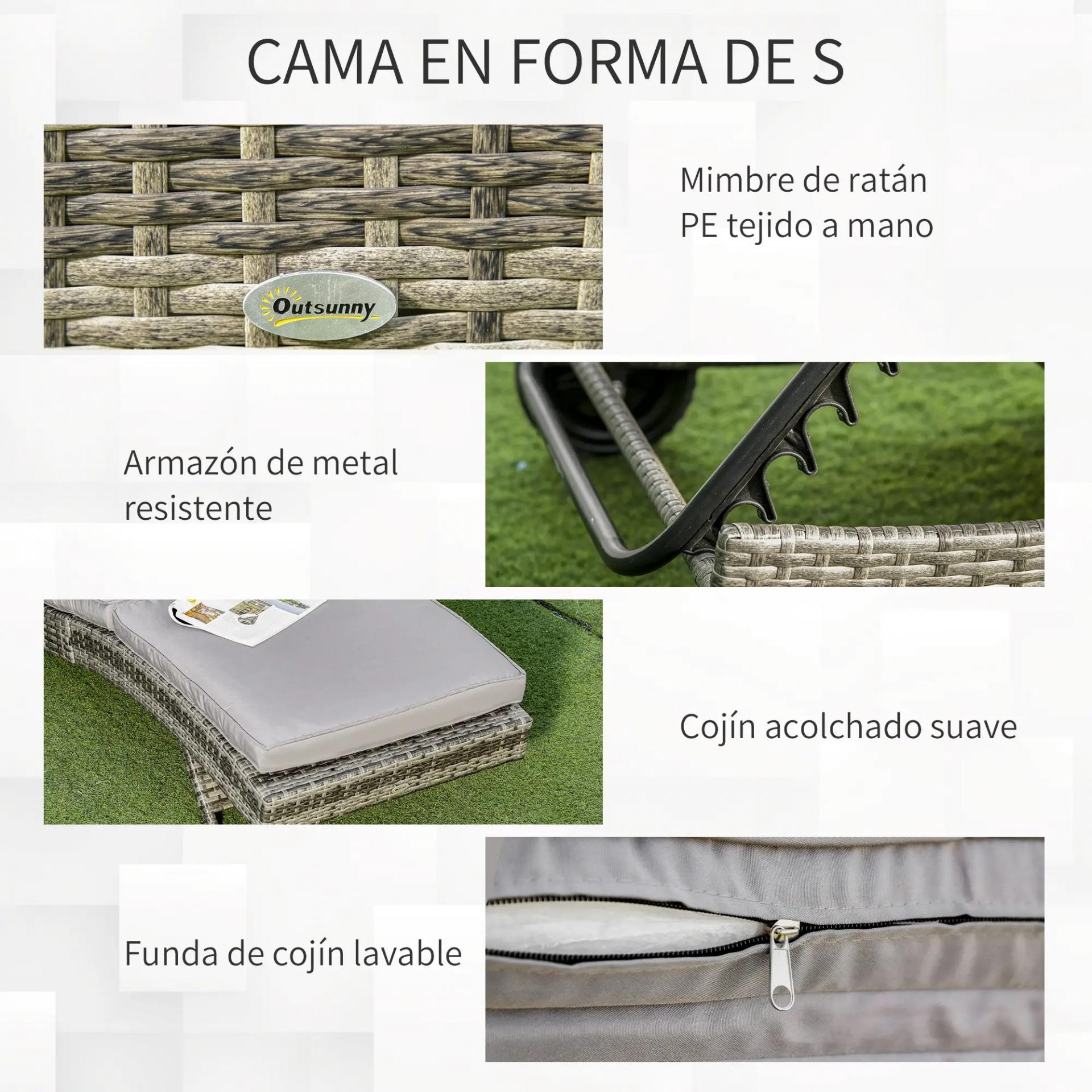 TUMBONA DE JARDÍN EXTERIOR DE RATÁN SINTÉTICO: Con una forma contorneada en S y una superficie completamente acolchada, nuestra tumbona de ratán te ofrece un lugar junto a la piscina para leer, tomar el sol o simplemente disfrutar del tiempo al aire libre