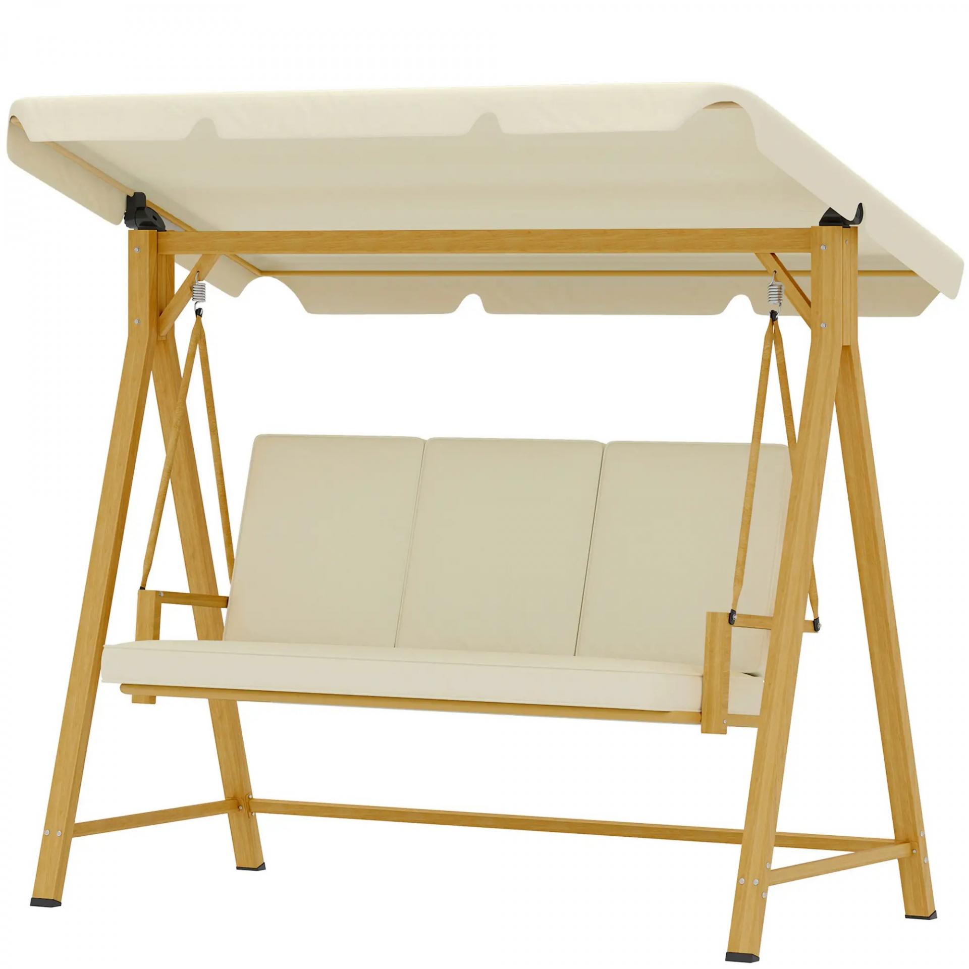 Columpio de Jardín con Toldo Ajustable para Tres Personas Estructura Metálica y Cojines 195x120x170 cm Beige