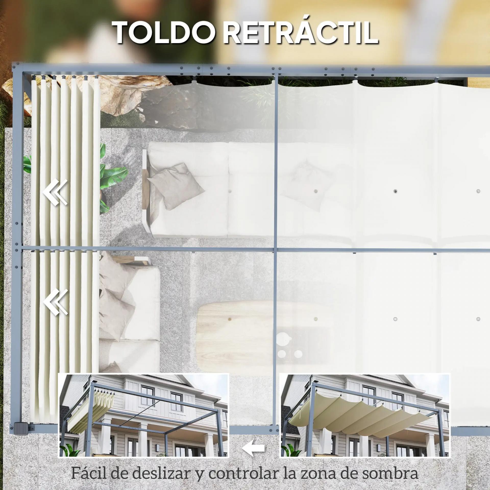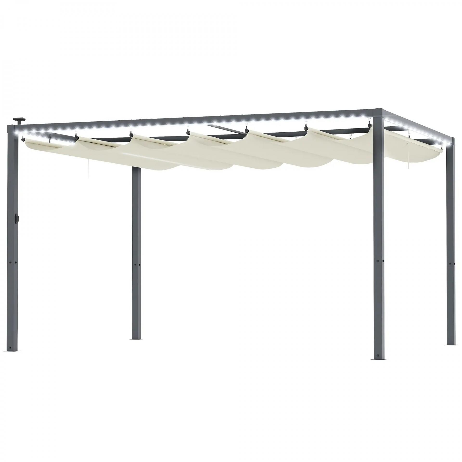 Pérgola de Aluminio 4x3 m Gazebo con Luces LED Solares y Techo Retráctil para Jardín Crema