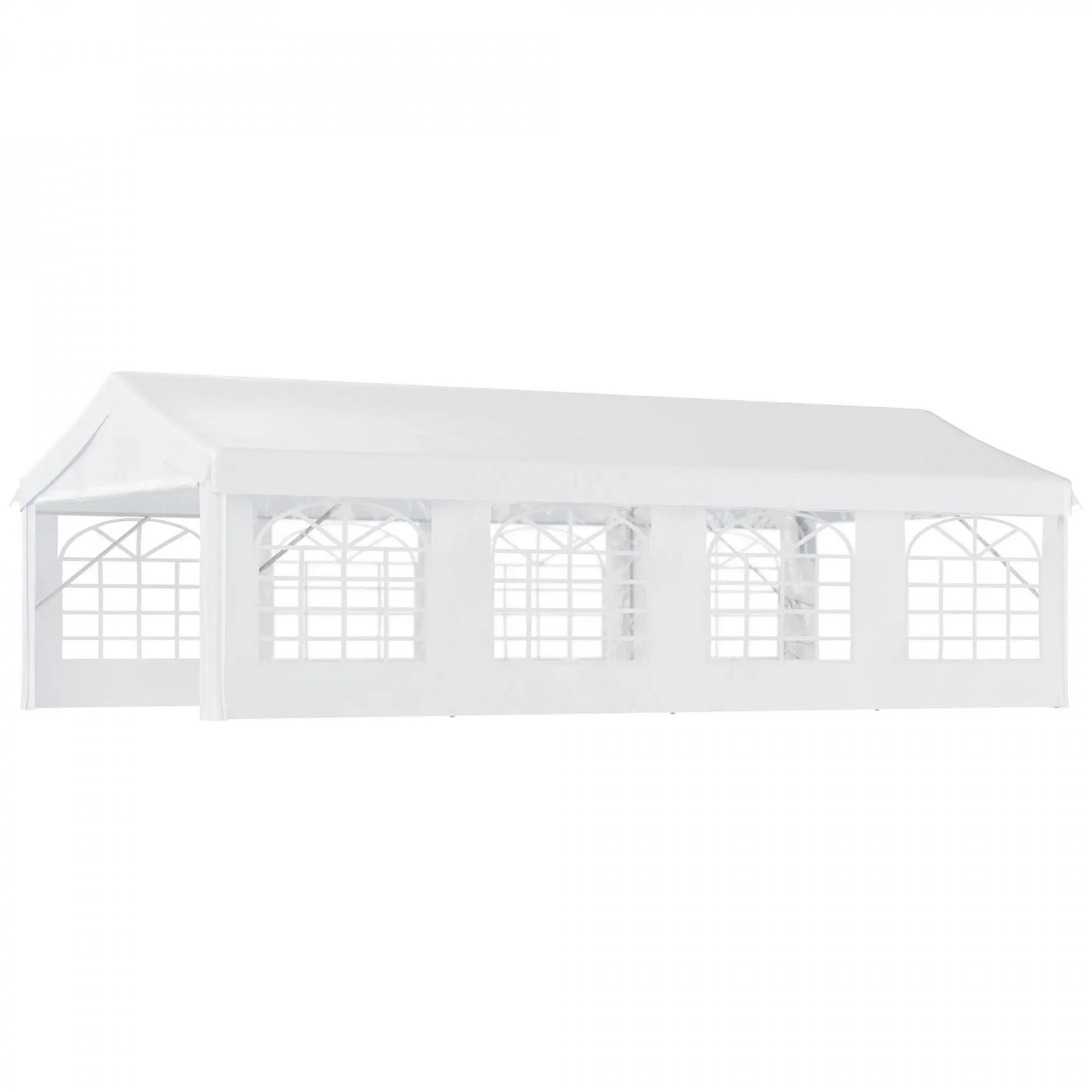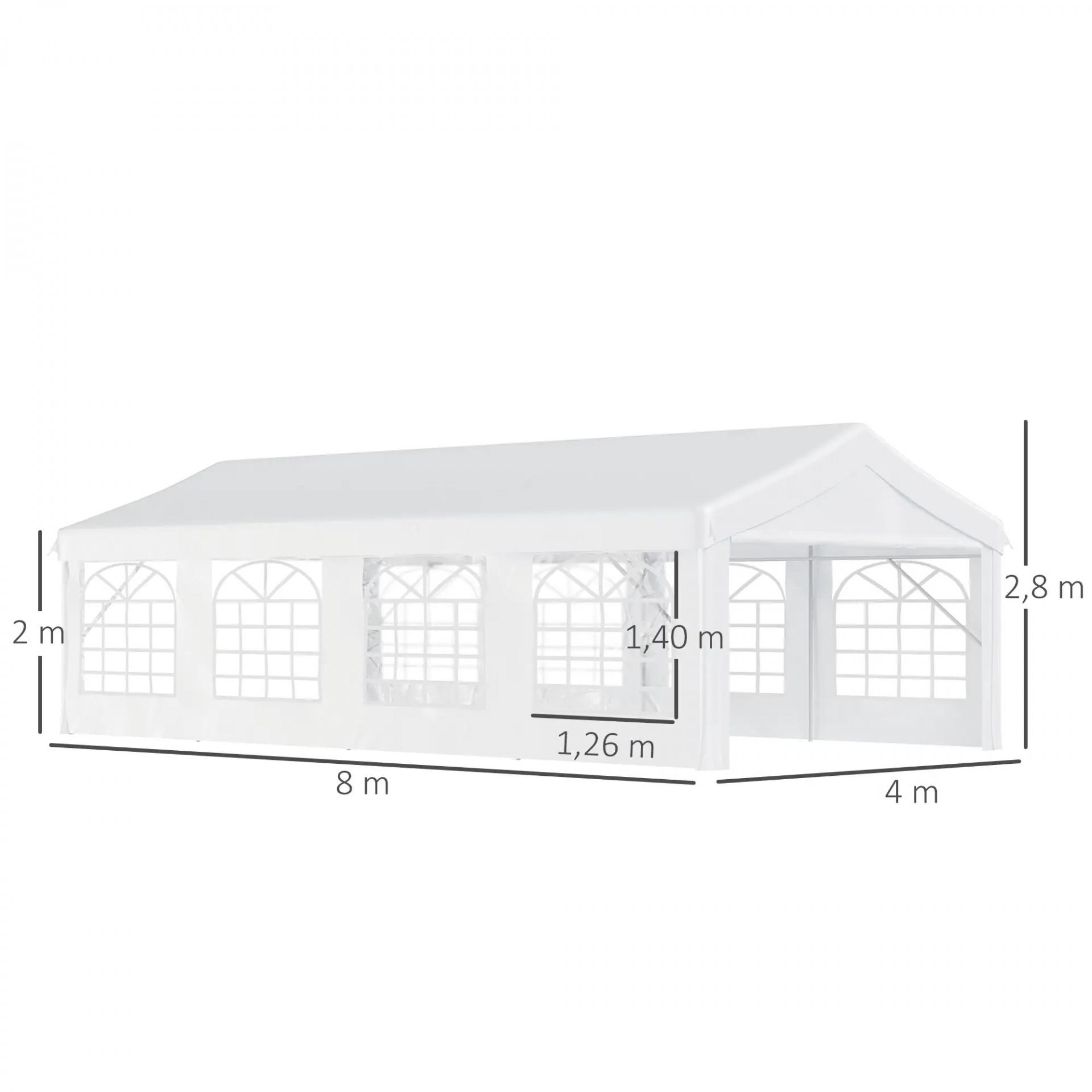Carpa de Jardín 8x4 m Pérgola Cenador Pabellón Cochera Gazebo con 4 Paneles Laterales y 8 Ventanas para Fiestas Blanco