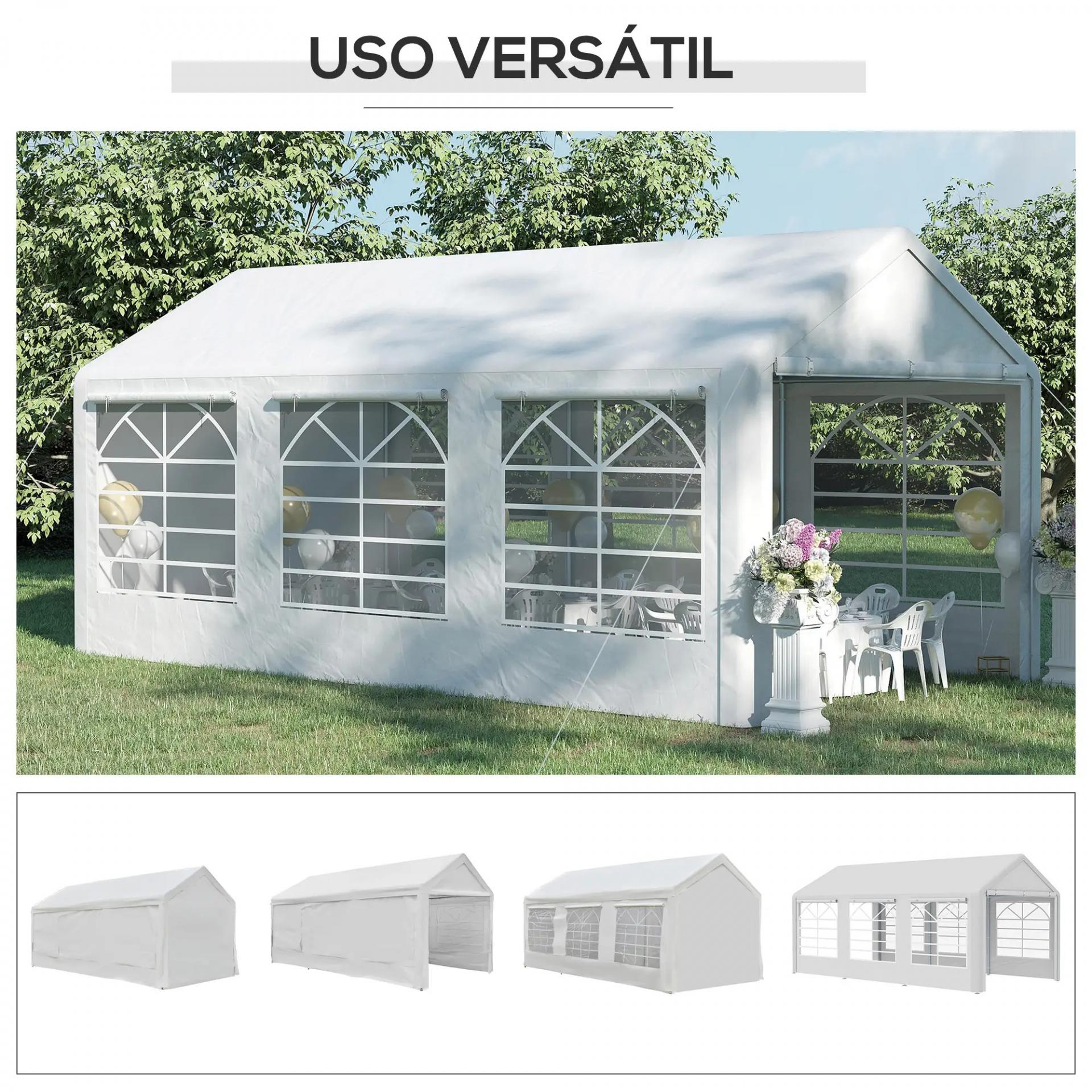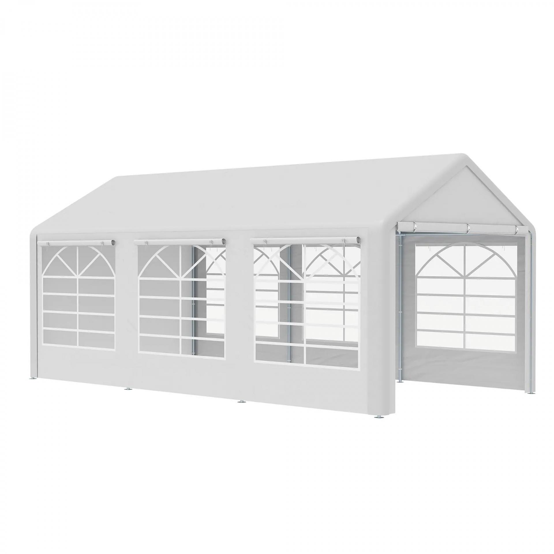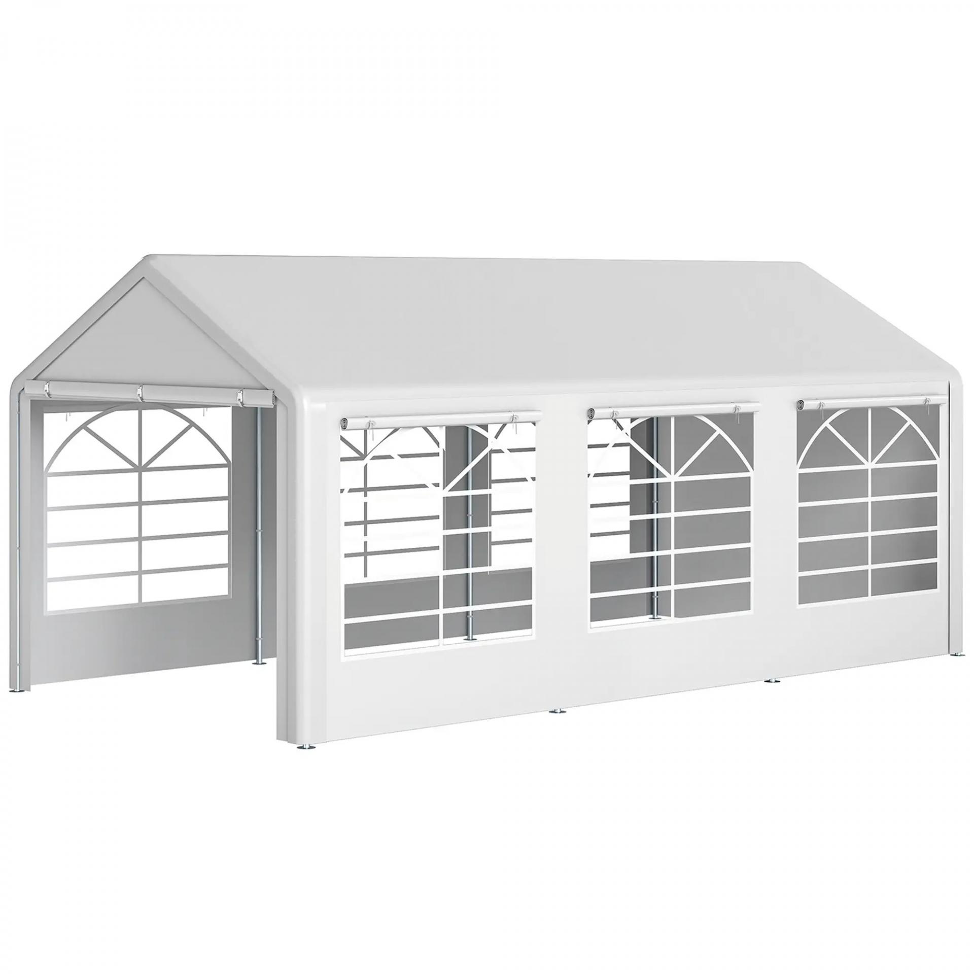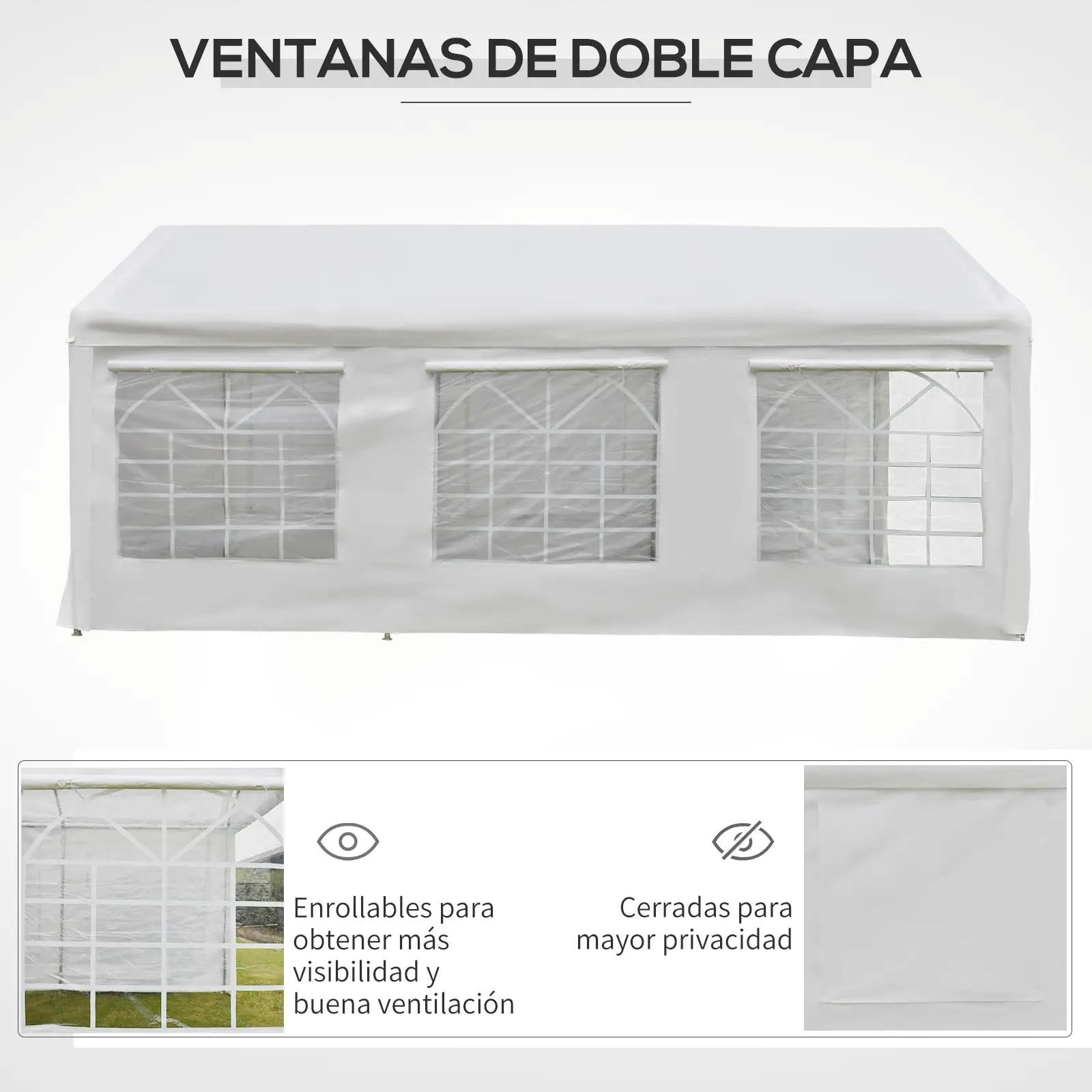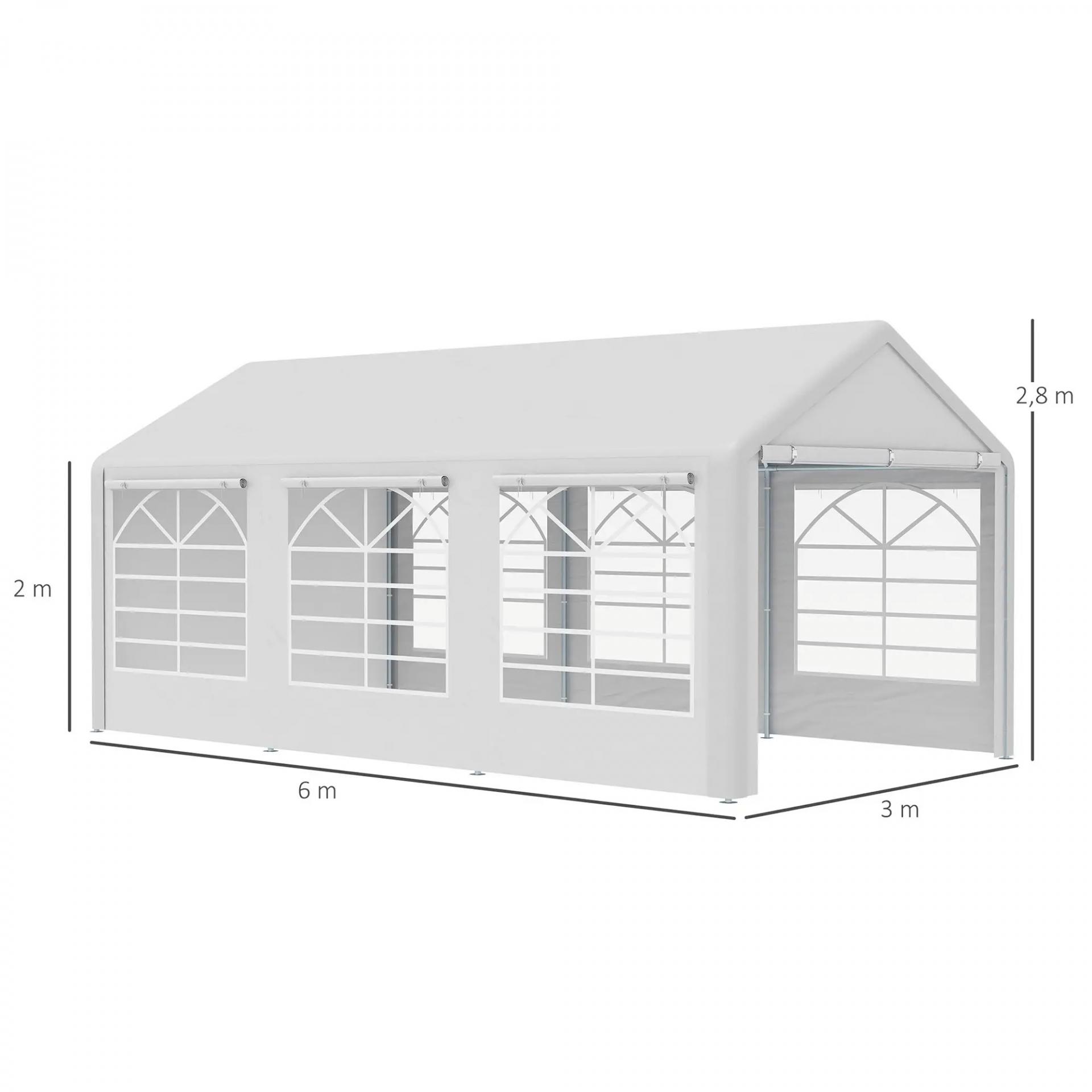 Carpa para Fiestas 6x3 m Cenador Pabellón de Jardín con 4 Paneles Laterales 2 Puertas Enrollables y 6 Ventanas Protección UV para Exterior Eventos Bodas Blanco