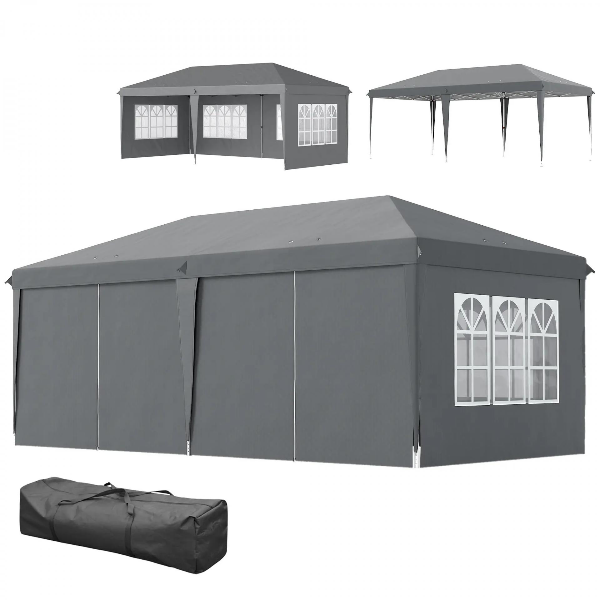 Carpa Plegable 6x3 m Pop-up con 4 Laterales Desmontables Cenador de Jardín con 4 Ventanas y Bolsa de Transporte Gris
