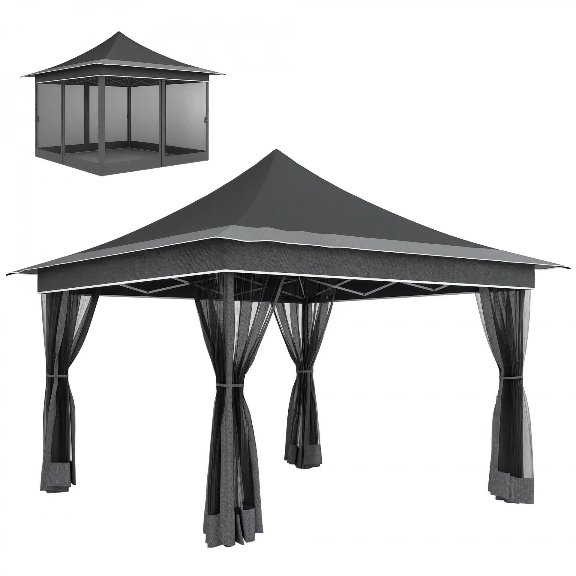 Carpa Plegable 3,5x3,5x3 m con Mosquitera Altura Ajustable y Protección UPF50+ con Bolsa de Transporte Gris Oscuro