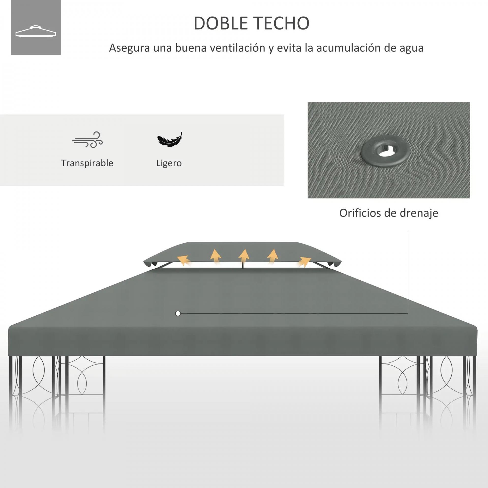 Toldo de Repuesto 4x3 m con Techo Doble para Cenador con Orificios de Drenaje Solo Toldo NO Incluye Marco Gris Oscuro
