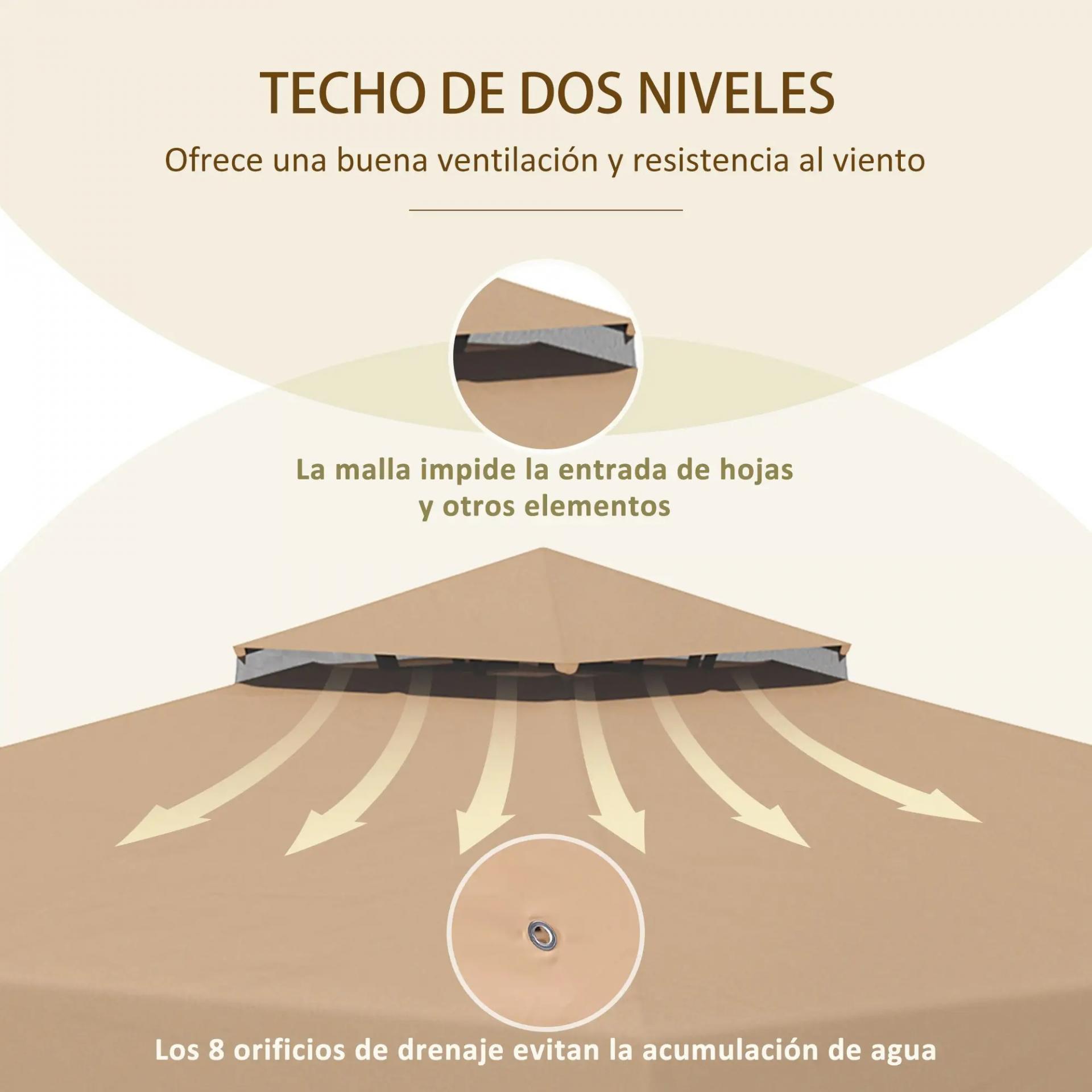 Techo de Repuesto para Cenador 3x3 m Cubierta de Repuesto con Doble Techo y 8 Orificios de Drenaje Caqui