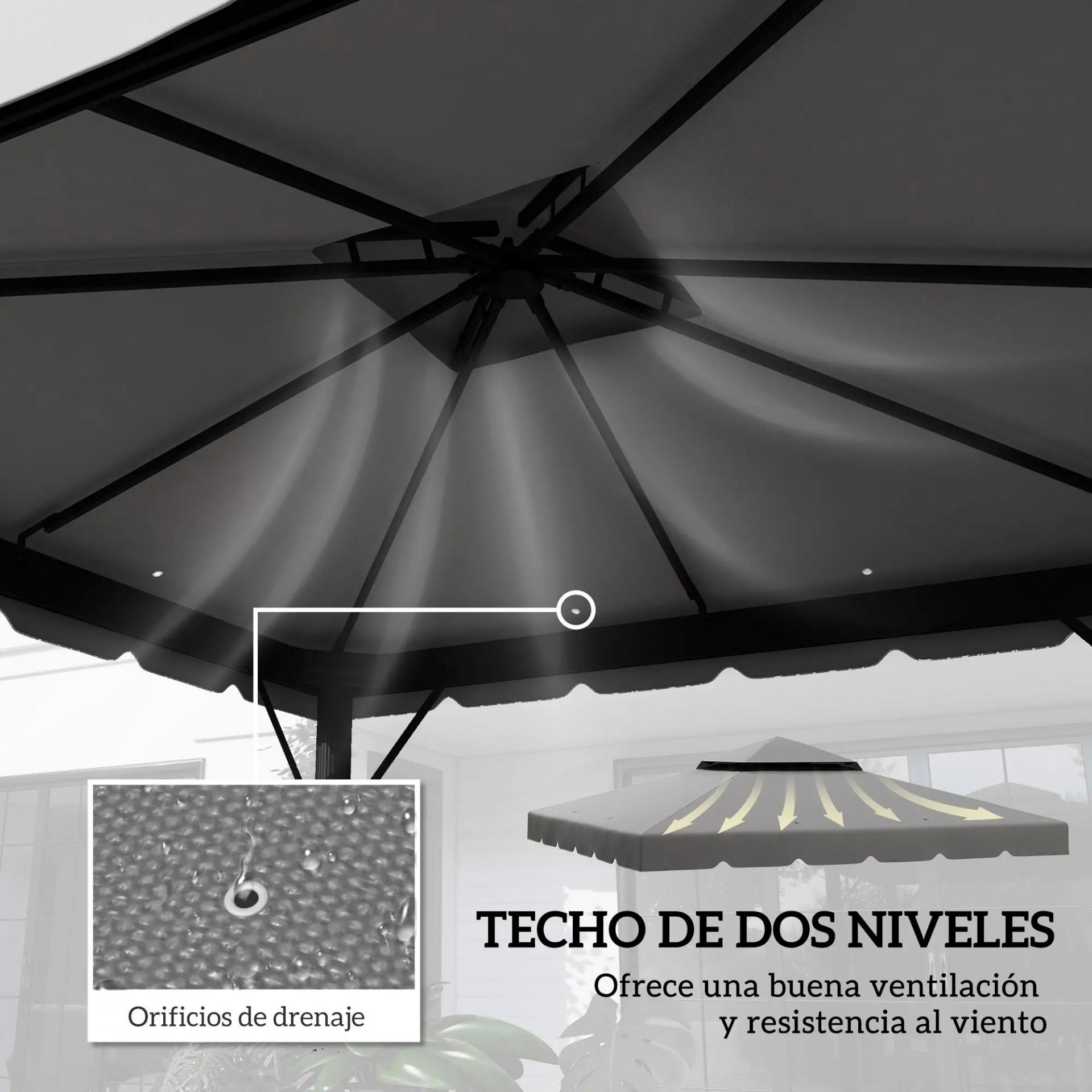 Techo de Repuesto para Cenador 3x3 m Cubierta de Repuesto con Techo Doble y 8 Orificios de Drenaje Gris Claro