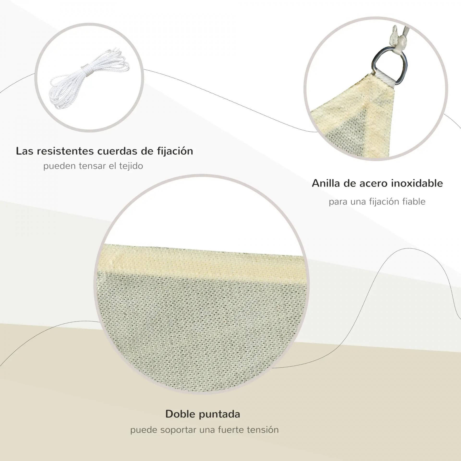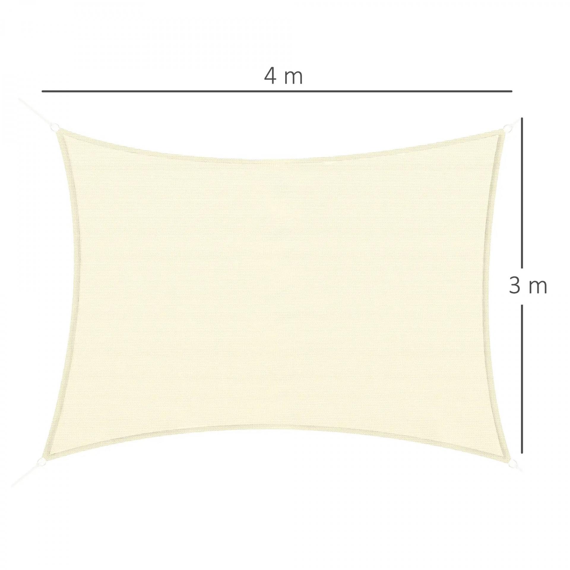 Toldo Vela Rectangular 4x3 m Vela de Sombra para Jardín Patio Terraza HDPE Anti UV y Transpirable Color Crema