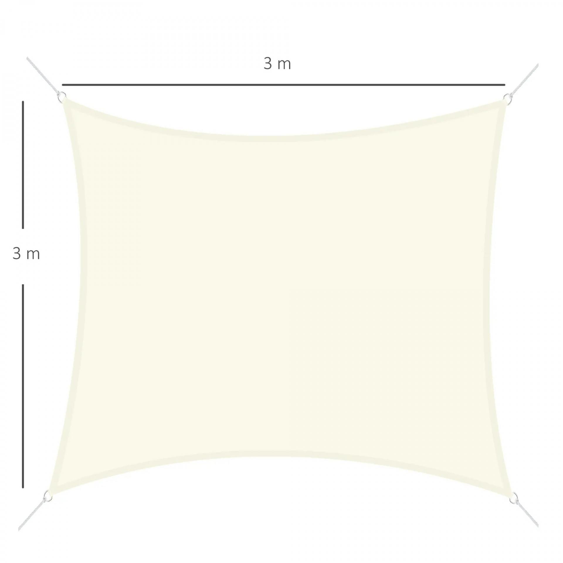 Toldo Vela de Sombra Cuadrado 3x3 m Toldo de Terraza de Poliéster con Anillo de Acero Inoxidable y Cuerdas Crema