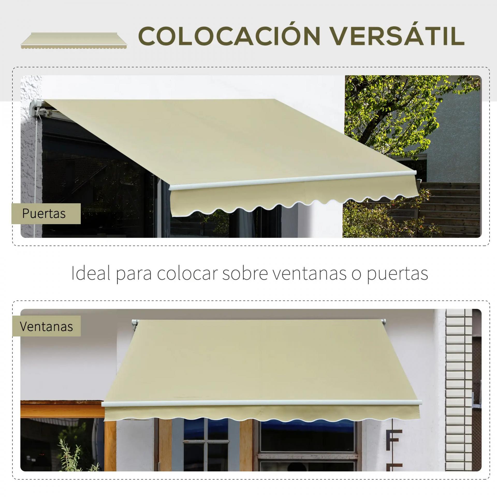 - APERTURA Y CIERRE CON MANIVELA: Este toldo enrollable exterior se abre y cierra fácilmente mediante una manivela manual. Es fácil de limpiar con una esponja y un paño. Incluye firmes soportes y tornillos para su correcta fijación. Fácil de montar y desmontar para guardarlo en invierno si lo deseas