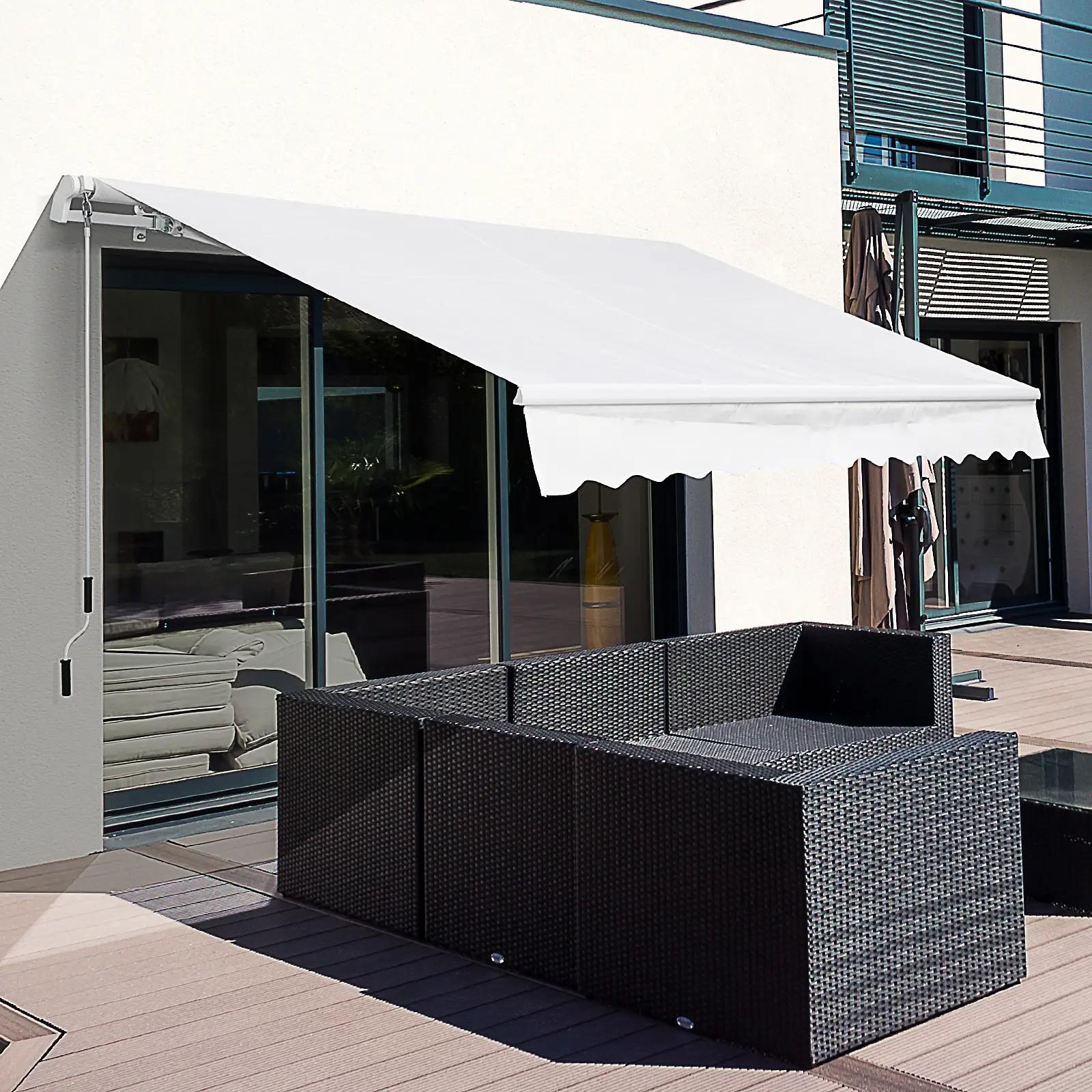 Toldo Manual Retráctil 350x250 cm Toldo para Balcón con Manivela de Metal Impermeable y Anti-UV Toldo Enrollable de Exterior para Jardín Terraza Ventanas Blanco