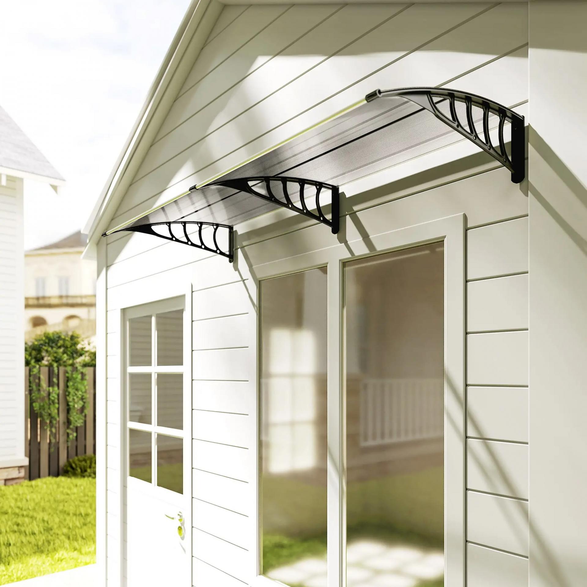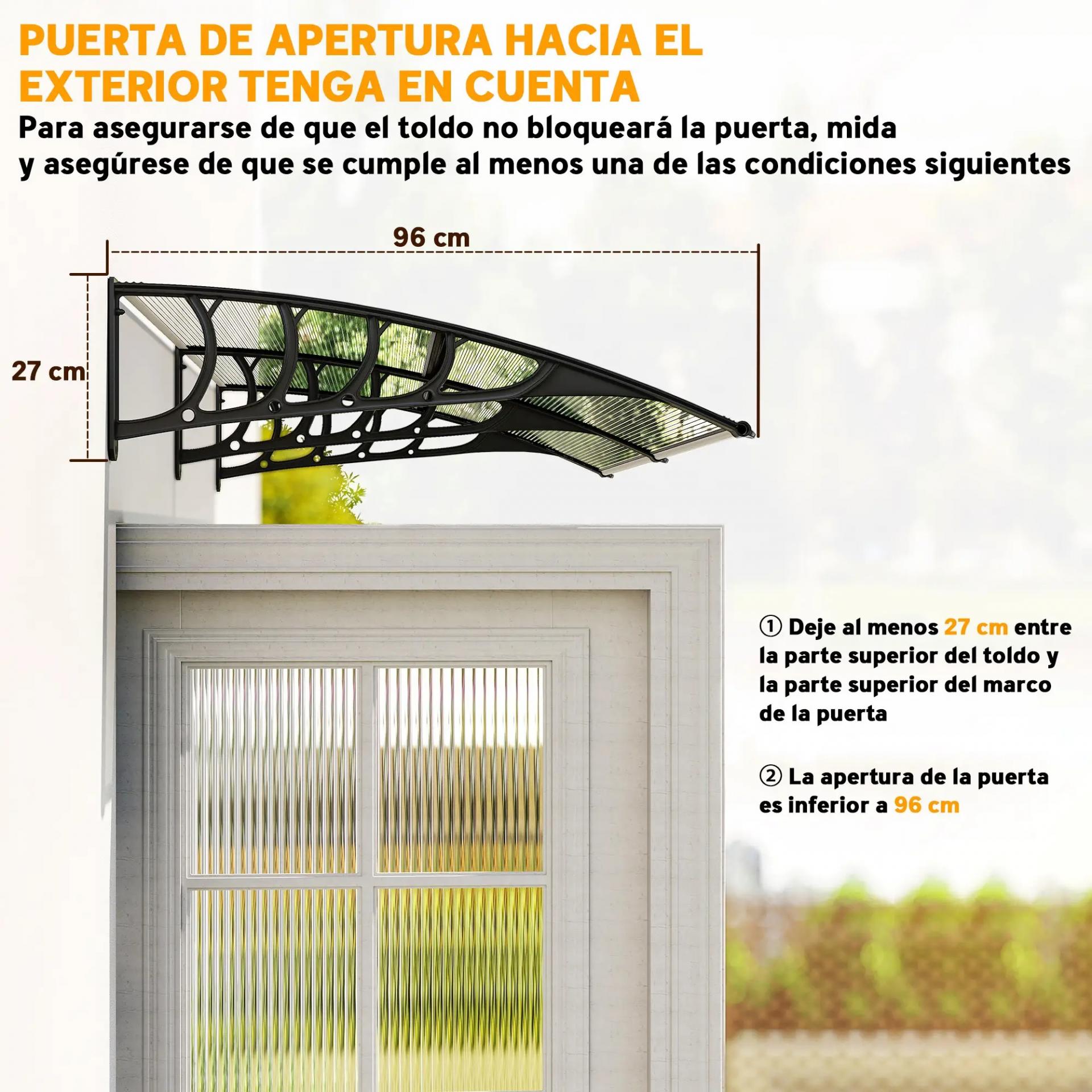 PROTECCIÓN UV: Marquesina para exterior, ideal para instalar sobre puertas y ventanas. Para proteger contra el sol intenso, lluvia ligera o moderada y nieve ligera. Su revestimiento anti-UV disminuye el recalentamiento de tu hogar a la vez que puedes seguir disfrutando de la luminosidad
