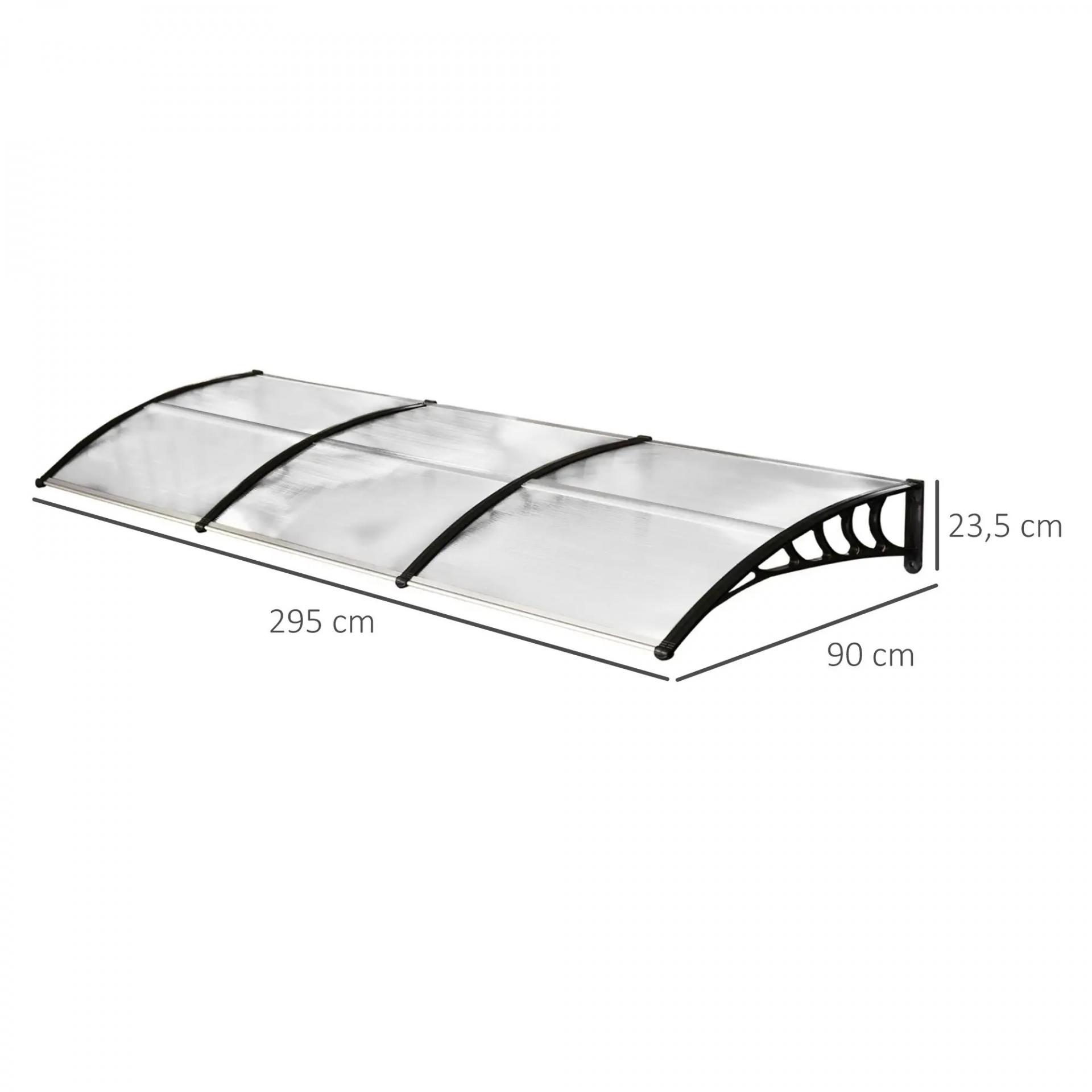 Marquesinas para Puertas y Ventanas 90x295x23,5 cm Tejadillo de Protección contra Sol y Lluvia Diseño Moderno Aleación de Aluminio Transparente