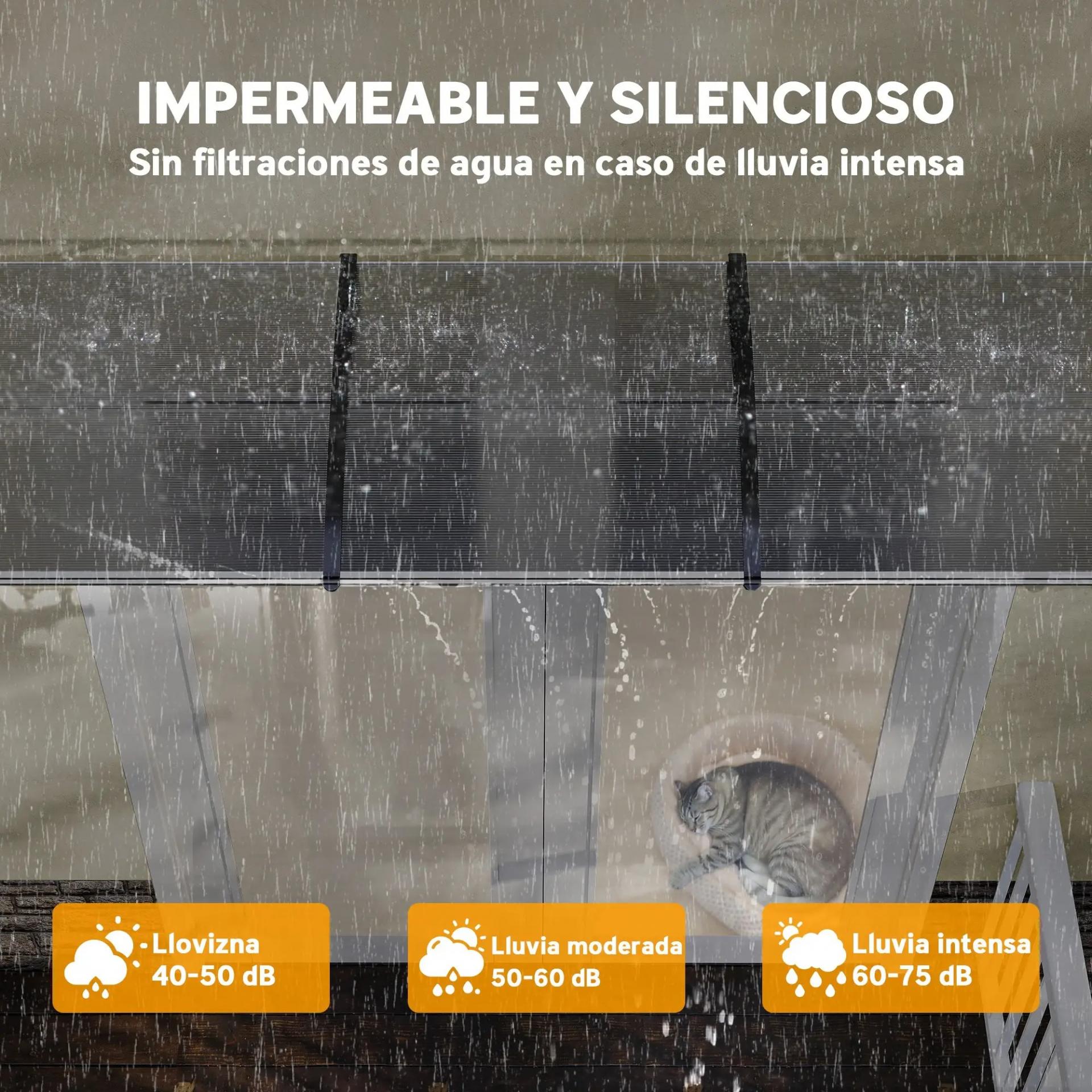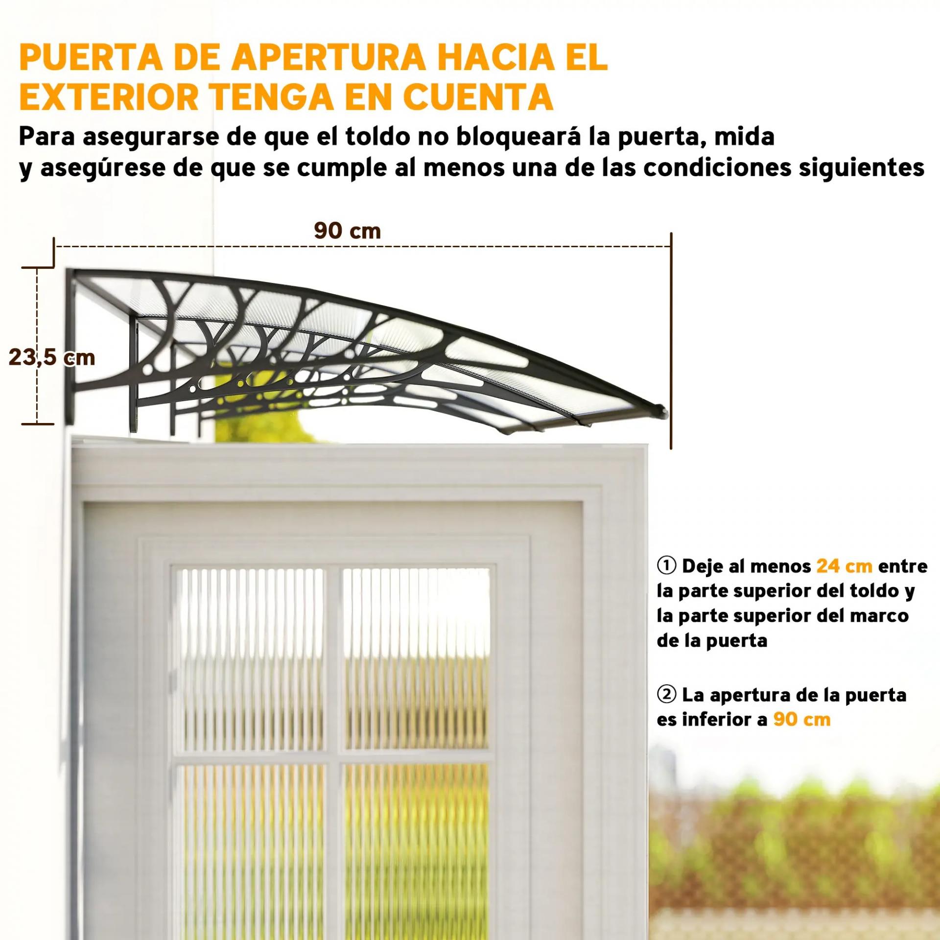PROTECCIÓN UV: Marquesina para puertas de exterior, ideal para instalar sobre puertas y ventanas. Para proteger de la lluvia o la incidencia directa de los rayos del sol. Su revestimiento anti-UV disminuye el recalentamiento de tu hogar a la vez que puedes seguir disfrutando de la luminosidad