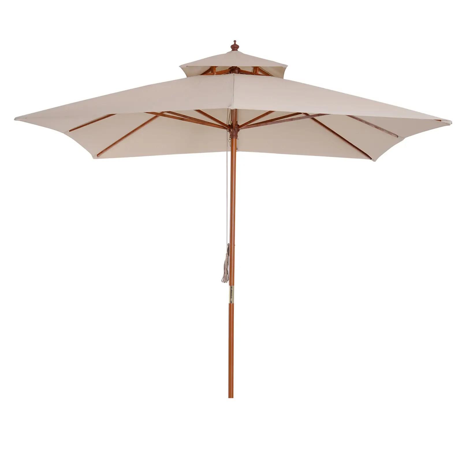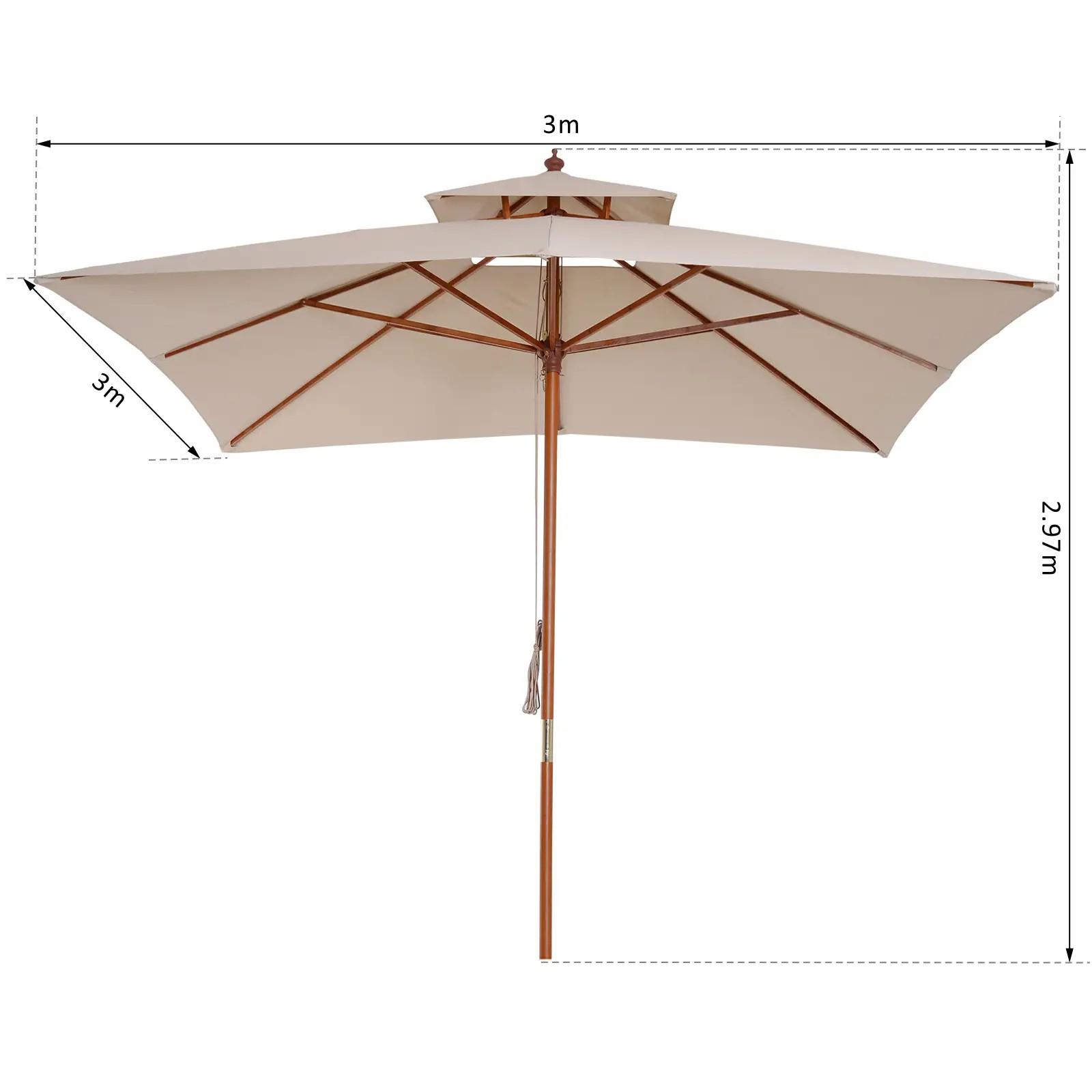 Sombrilla de Jardín 3x3x3 m con Doble Techo Sistema de Polea Impermeable para Terraza Balcón Exterior Beige