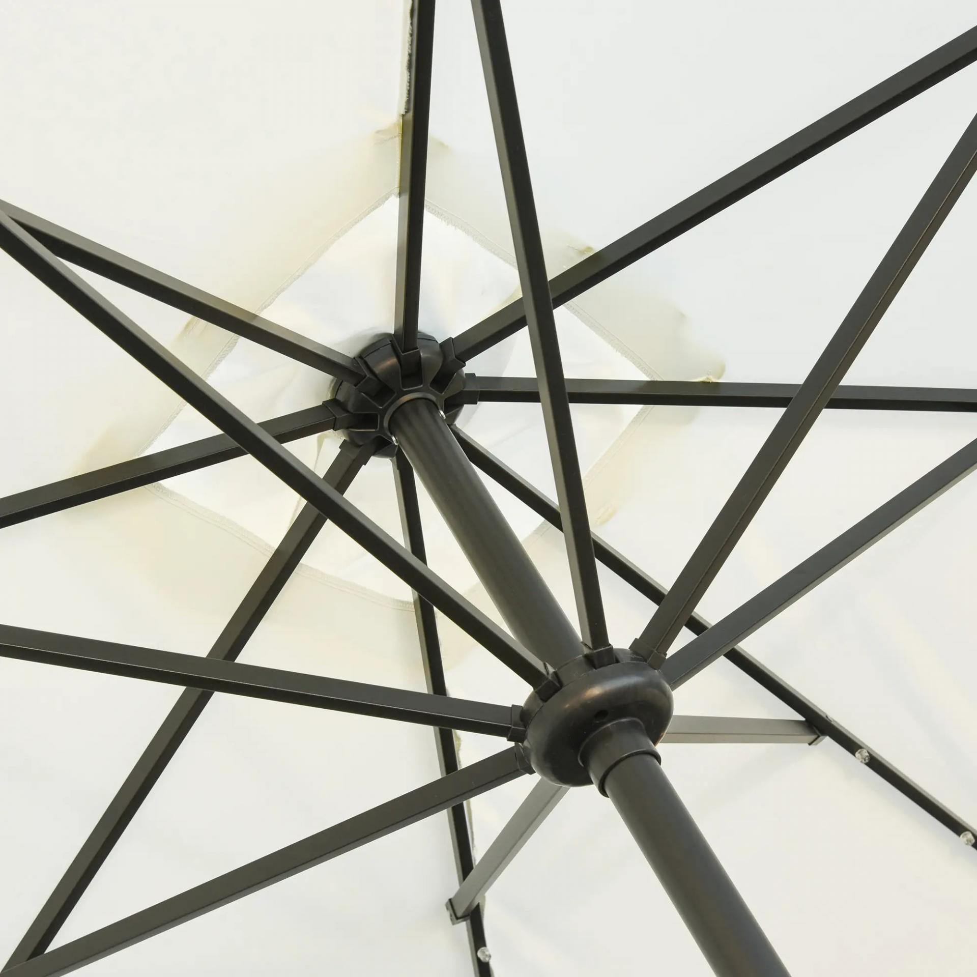 Parasol de Terraza Exterior 268x205x248 cm con Techo Inclinable hasta 45° Luces LED Solares y Manivela Blanco Crema