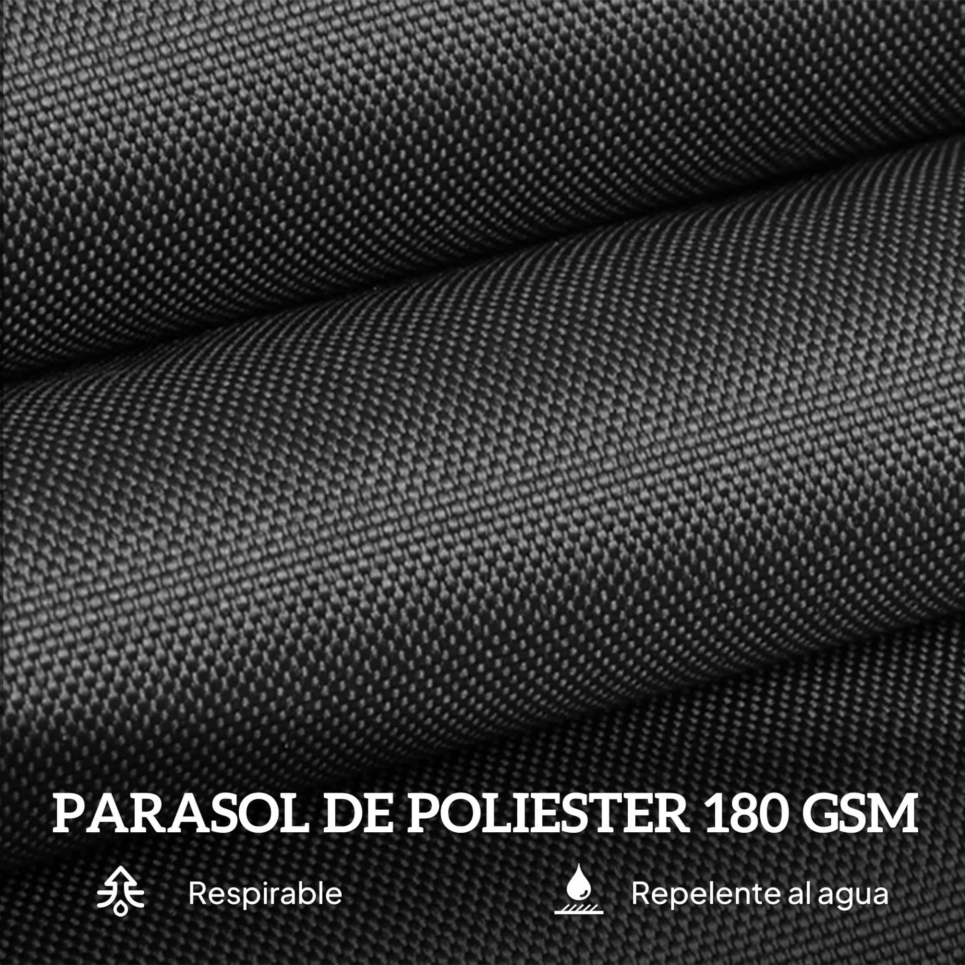 - TOLDO PROTECCIÓN SOLAR: Con tejido de poliéster, el toldo de esta sombrilla de jardín exterior adquiere una gran resistencia climática, siendo resistente a la intemperie, al agua y a los rayos solares. Para poder disfrutar del aire libre con tu familia o amigos a la sombra
