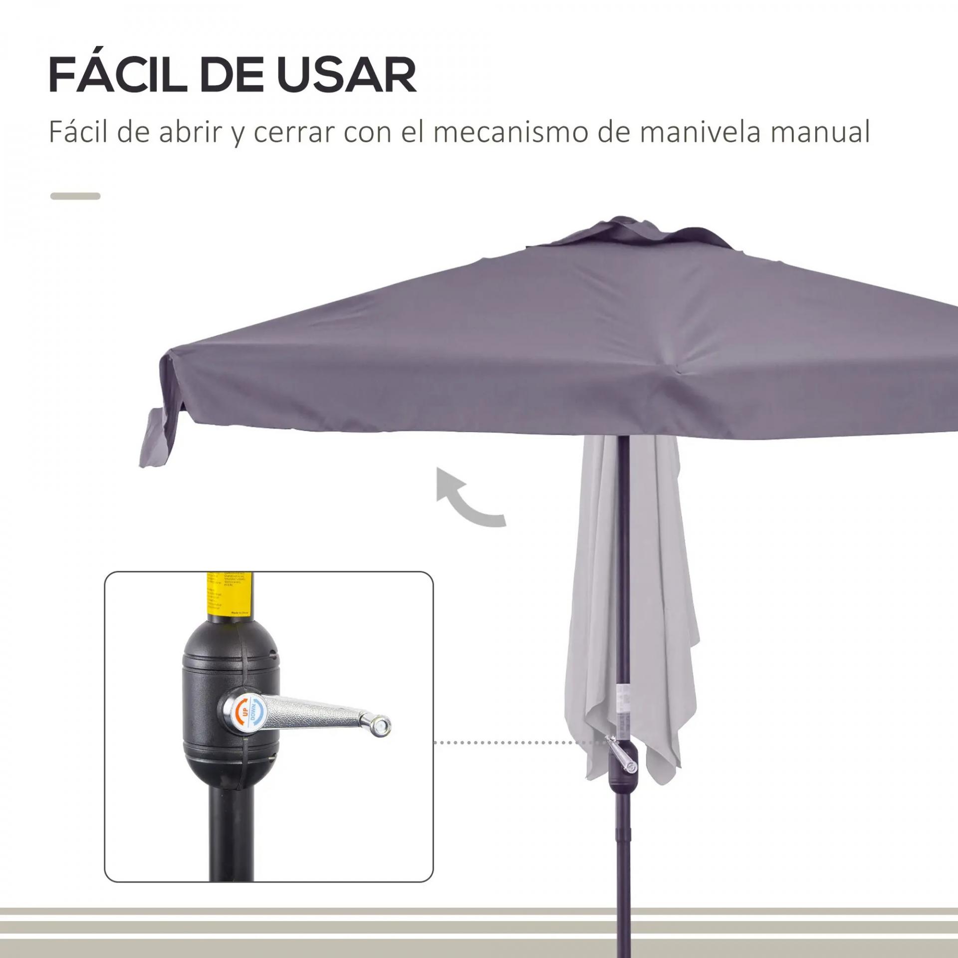 - MECANISMO CON MANIVELA: Abre y cierra tu parasol de terraza en segundos gracias a la cómoda manivela situada en el mástil, que permite un ajuste rápido y sin esfuerzo, asegurando una experiencia de uso conveniente y eficiente