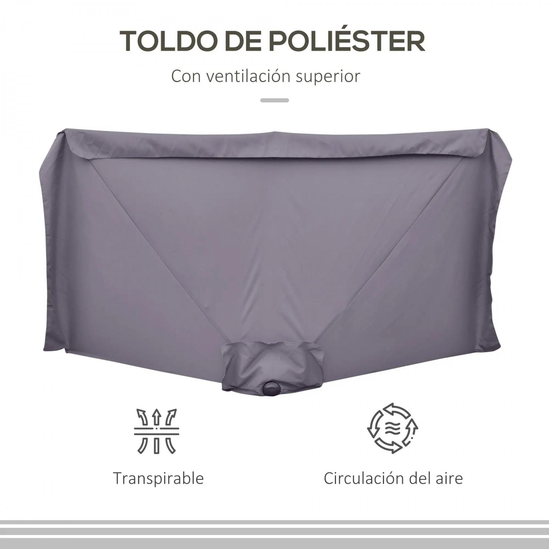 - VENTILACIÓN SUPERIOR: El respiradero superior de esta sombrilla de jardín no solo favorece el paso del aire fresco, sino que también reduce las oscilaciones causadas por el viento