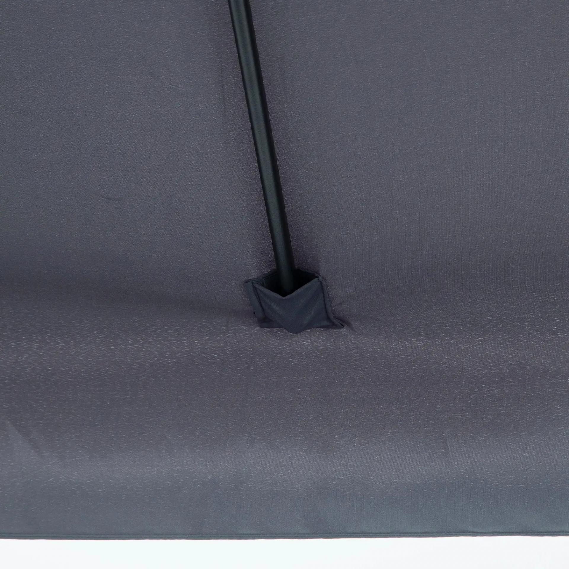 - MEDIDAS TOTALES: 230x130x249 cm (LxANxAL). NOTA: Esta sombrilla rectangular debe usarse junto a una pared. Base NO incluida