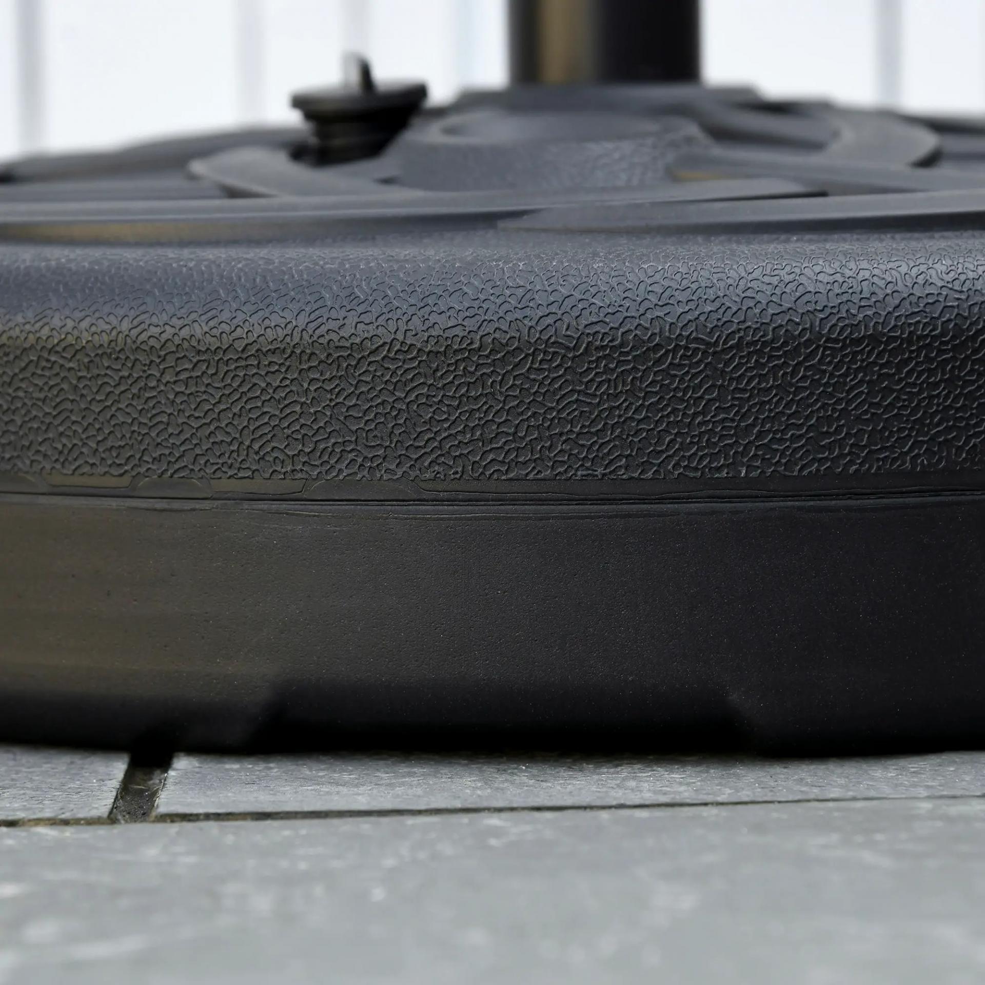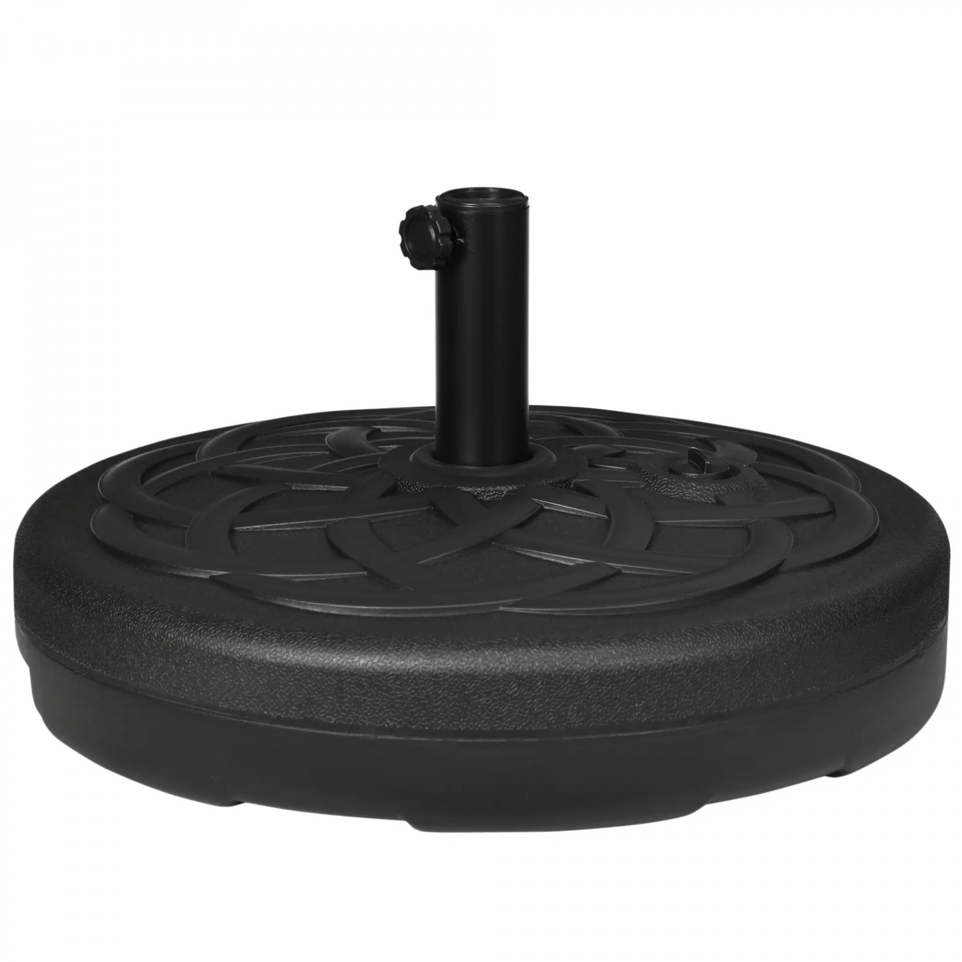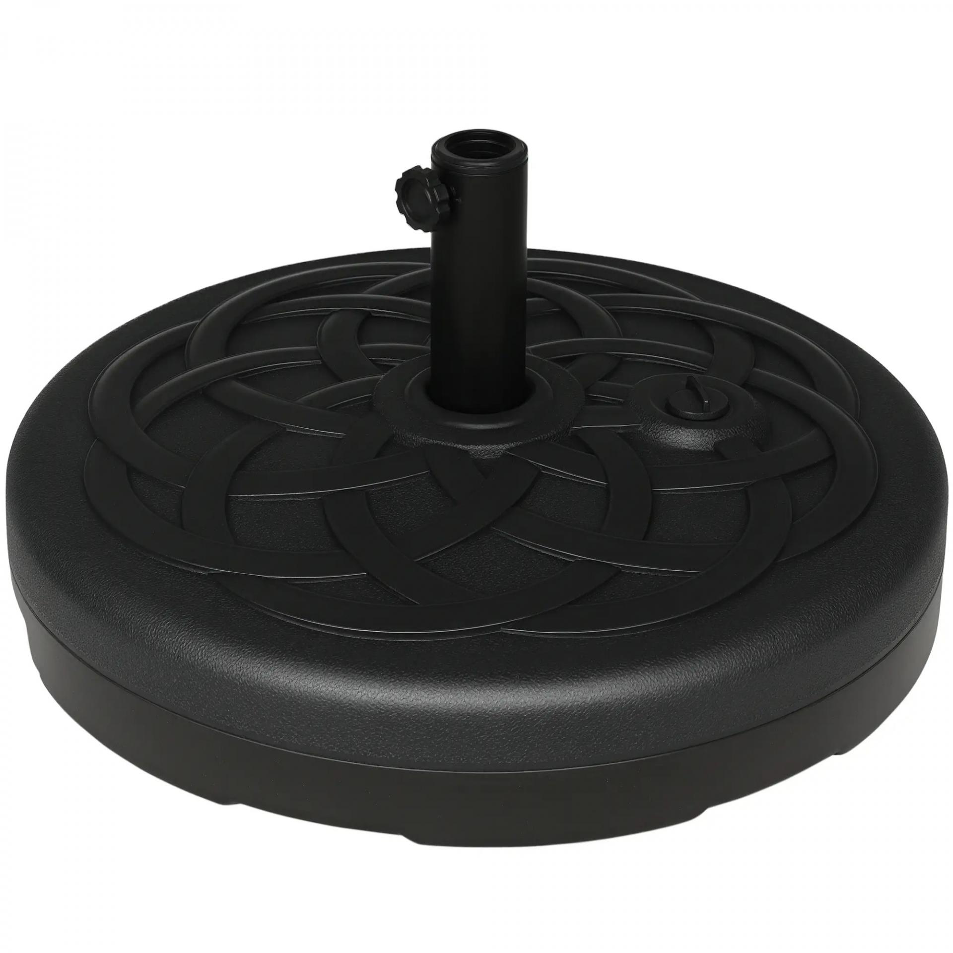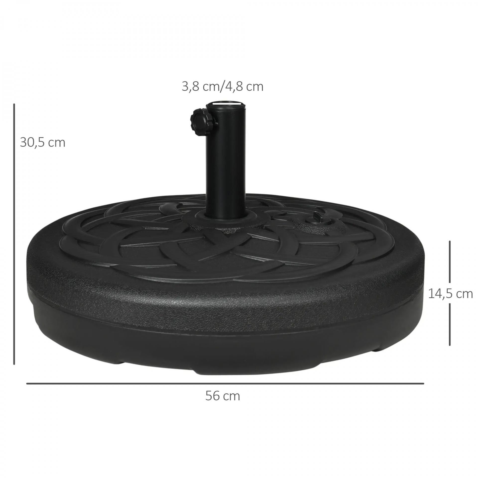 Base de Sombrilla de PE Redonda para Postes de 38mm/48mm Rellenable de Arena 35 kg y Agua 25L Ø56x30,5 cm Negro