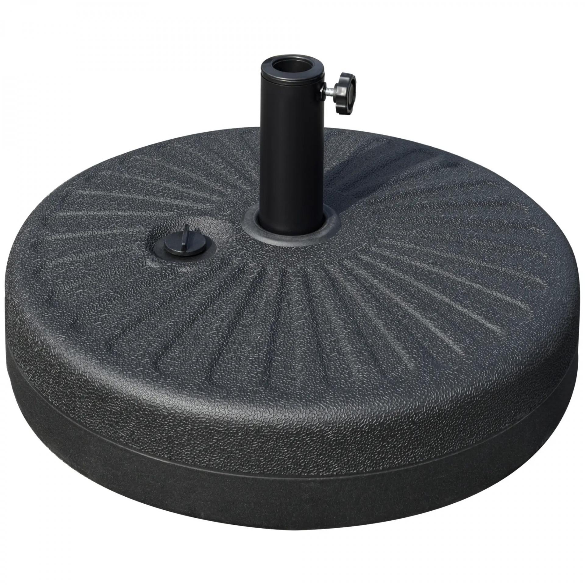 Base de Sombrilla de Jardín Rellenable de Agua 22 kg Soporte de Parasol Redondo Apto para Postes de 38mm/48mm Portátil para Terraza Patio Ø51x30,5 cm Negro