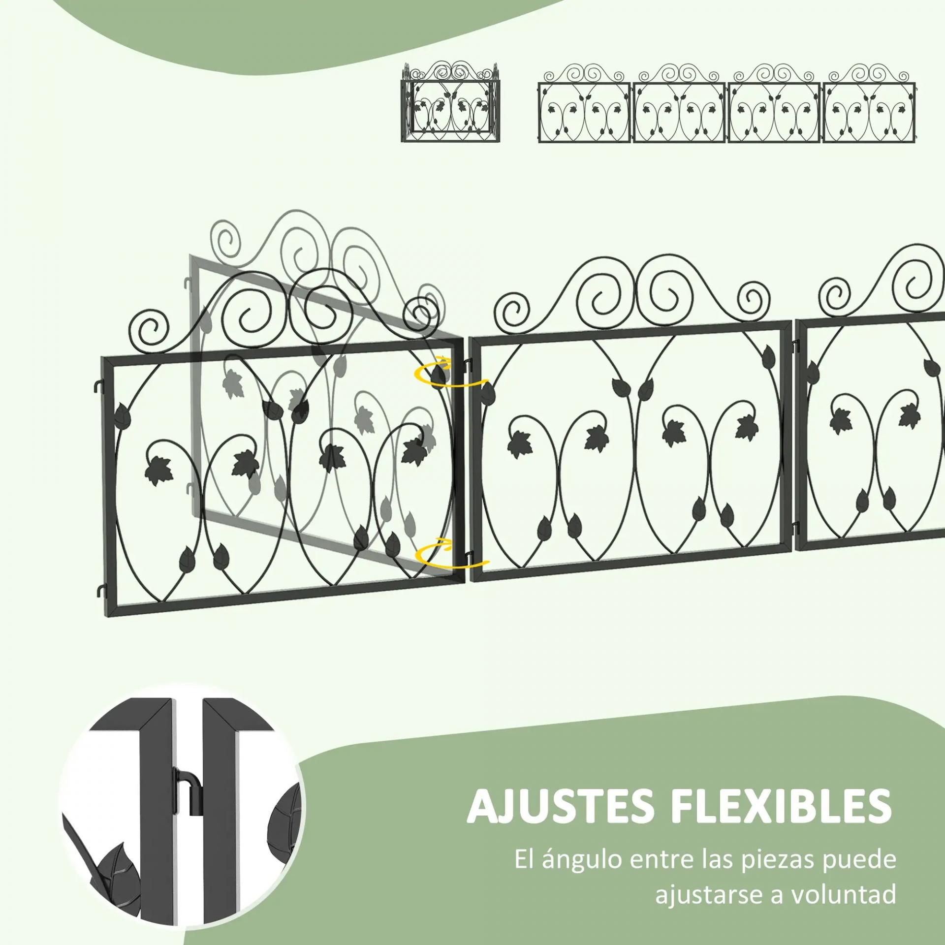 Vallas para Jardín Exterior de 4 Paneles 57x47,5 cm Vallas Decorativas de Jardín de Acero con Ángulo Ajustable Negro