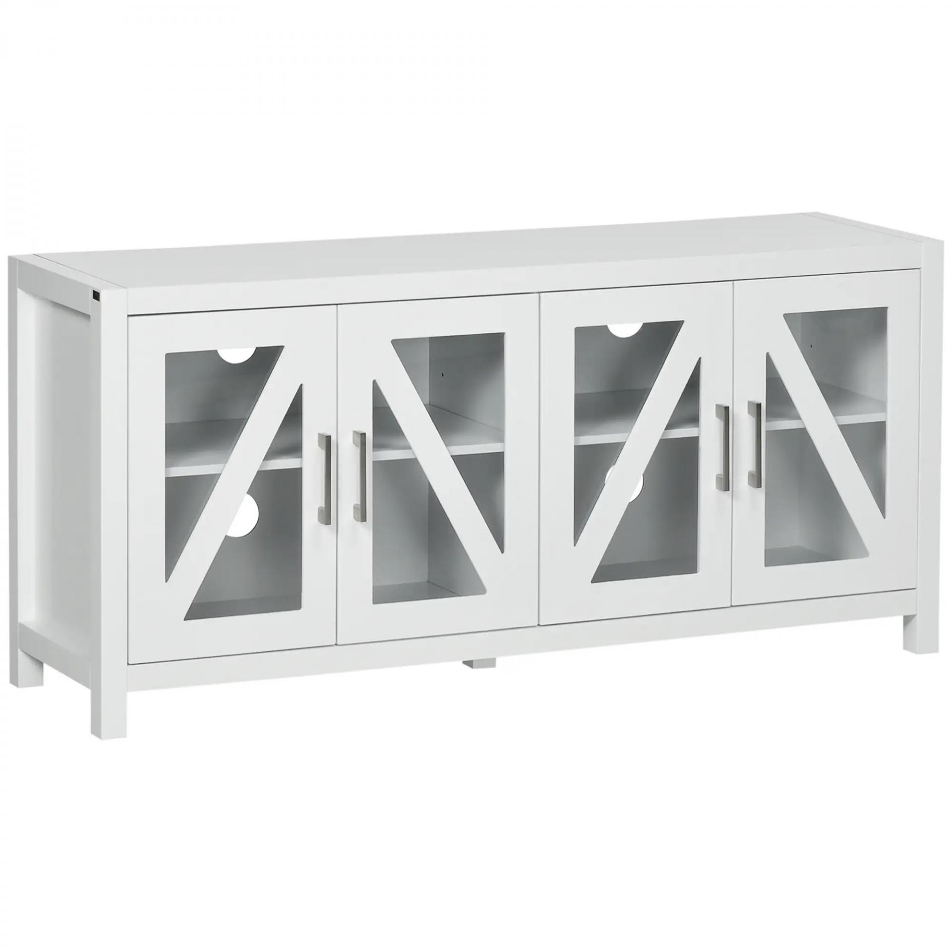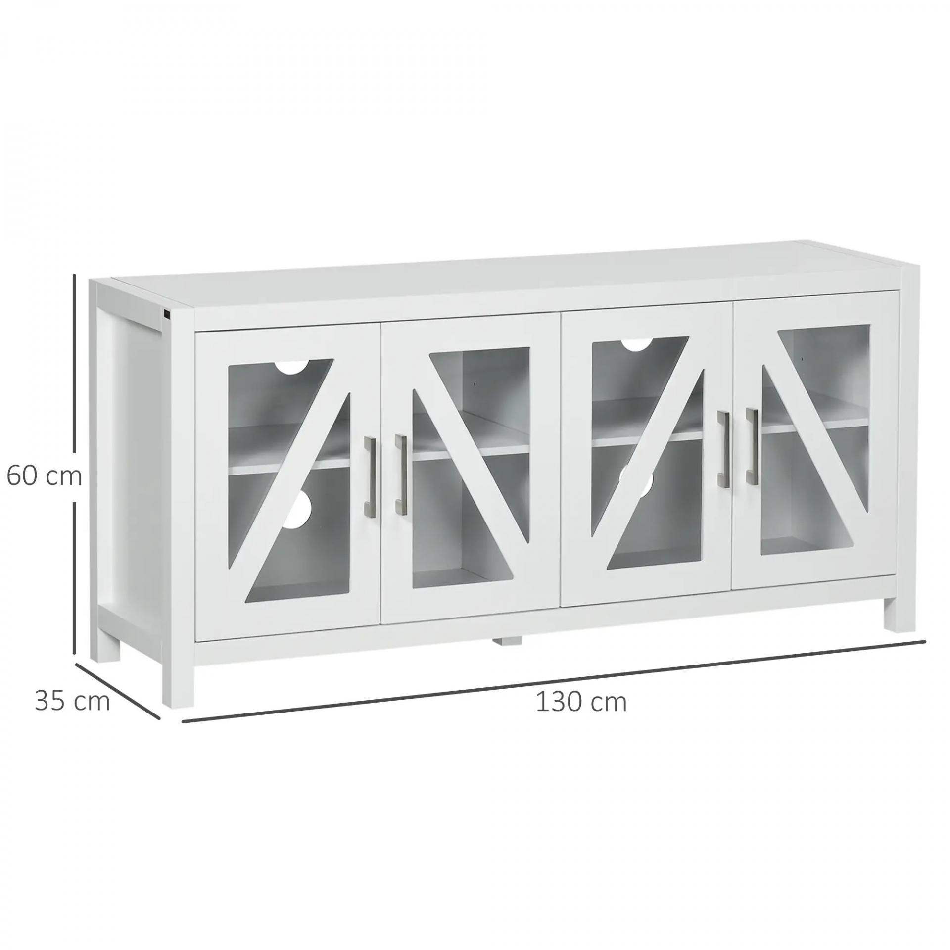 Mueble TV de Salón Mesa para Televisores de hasta 58" con 4 Puertas de Vidrio Estantes Ajustables 130x35x60 cm Blanco