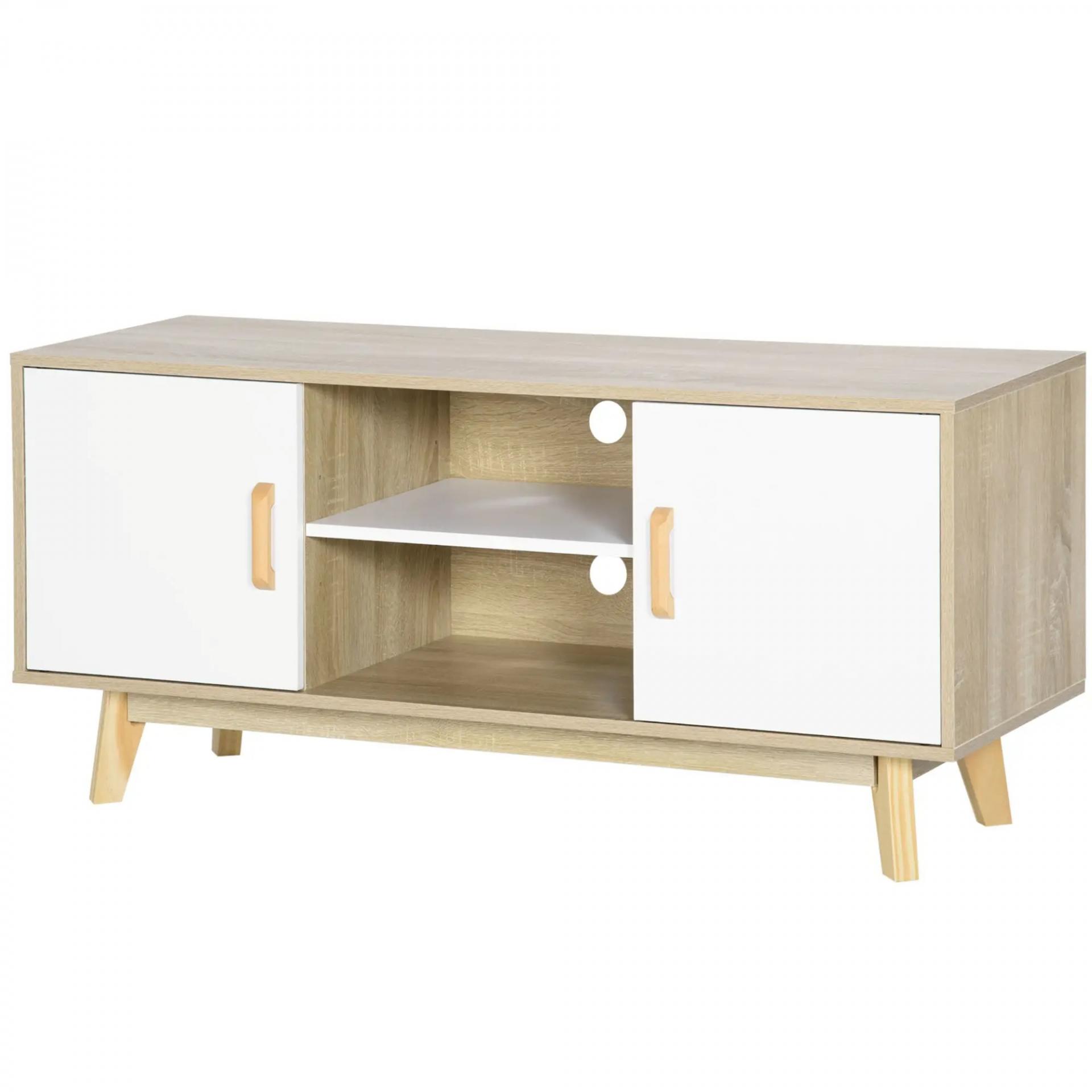 Mueble de TV para Televisores de hasta 55" Mueble con 2 Armarios y 2 Estantes 120x40x55 cm Natural y Blanco